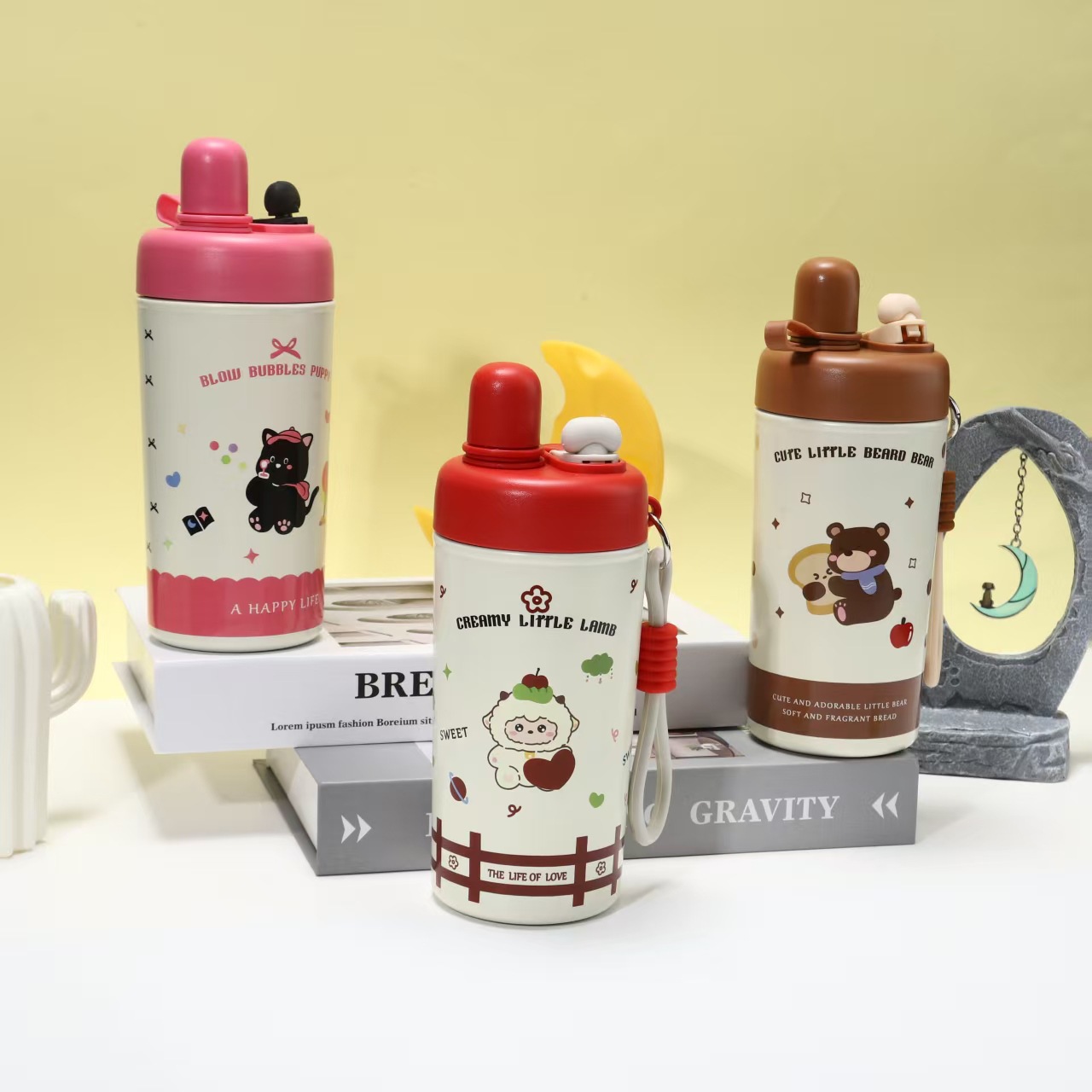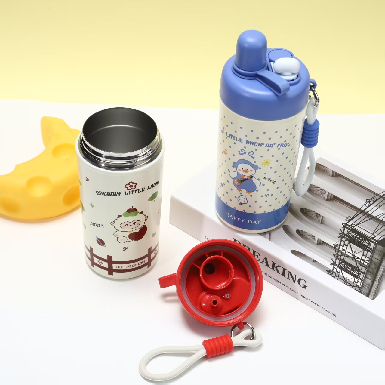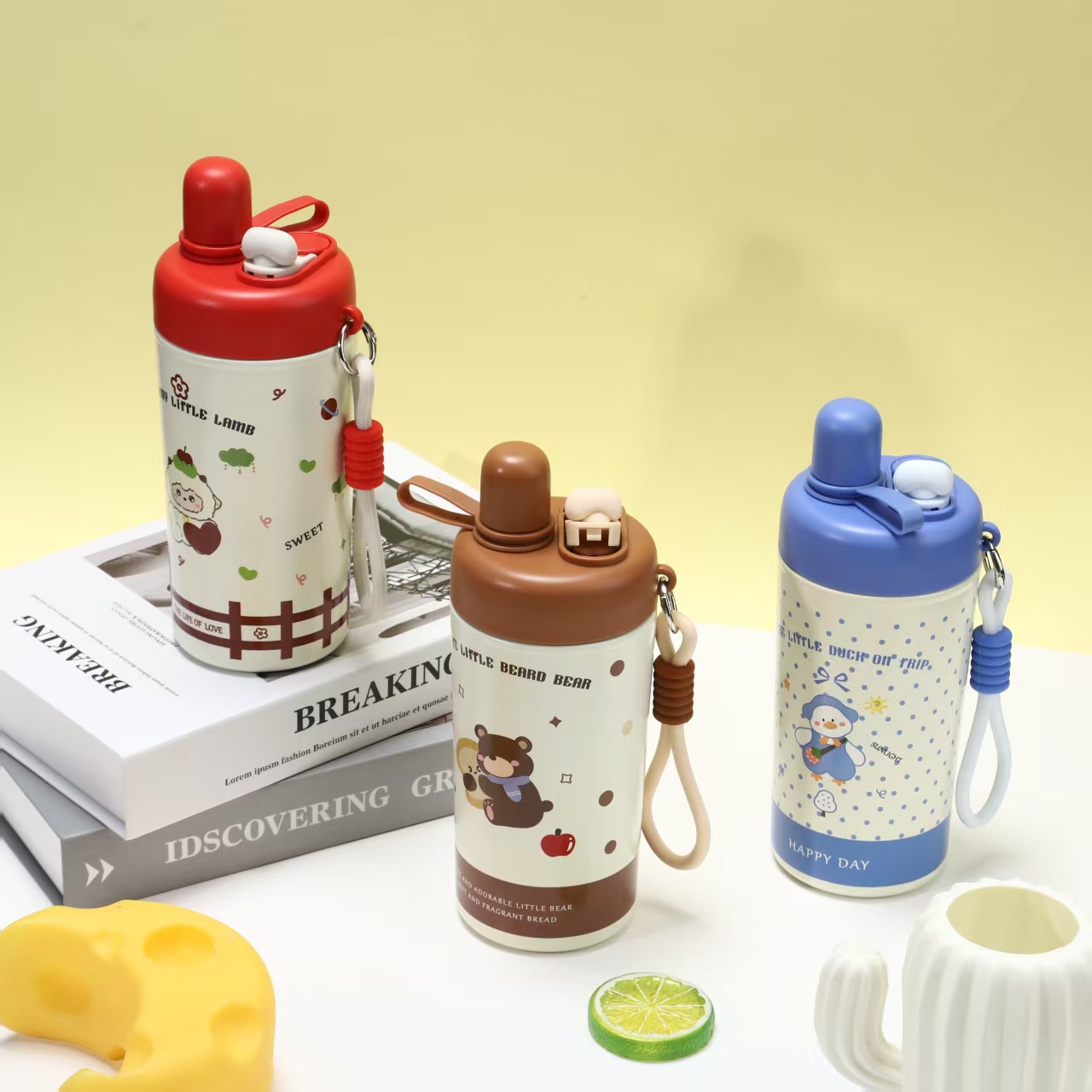 新款卡通儿童冰霸杯316不锈钢双饮保温杯高颜值便携随行吸管水杯