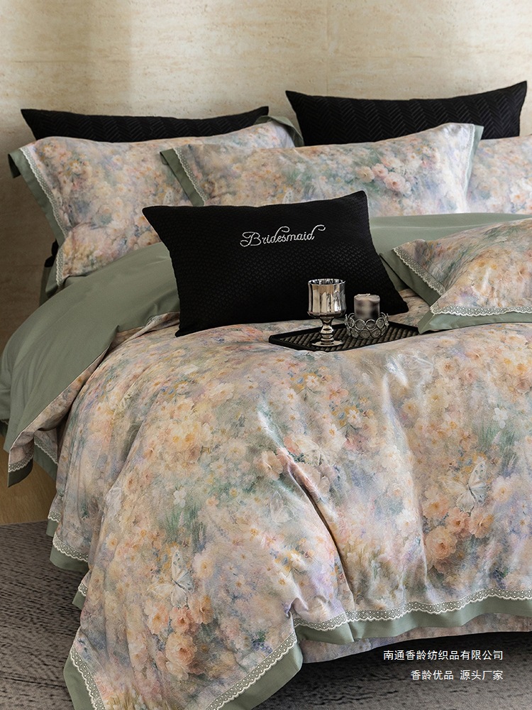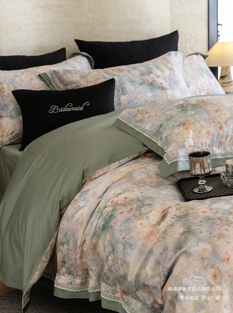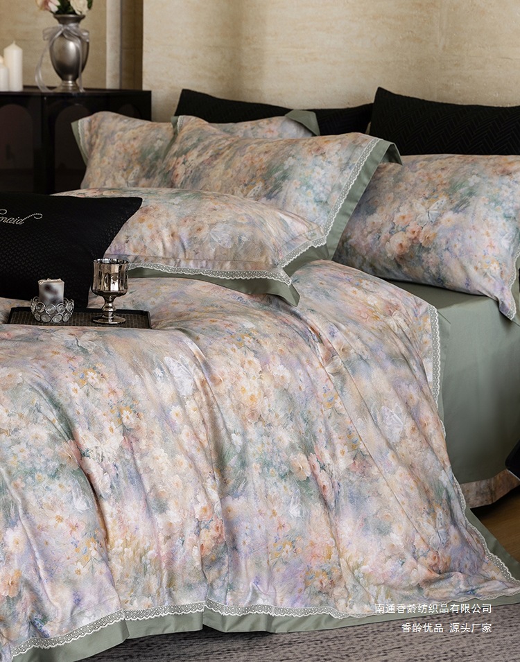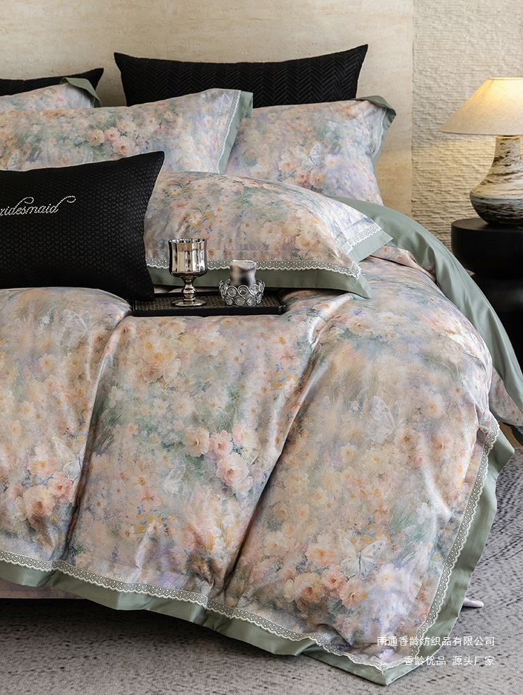 全棉四件套手感比较好,跟皮肤接触的时候也很舒服,所有的人都能用,不会存在什么过敏的东西,对皮肤更是没有伤害,而且很少会出现静电这样的现象,是一个很不错的选择。
