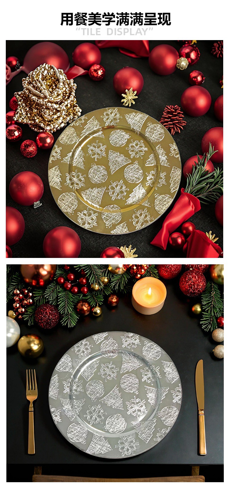 工厂直销外贸圣诞系列charger plates欧式复古托盘西餐厅高级金色
