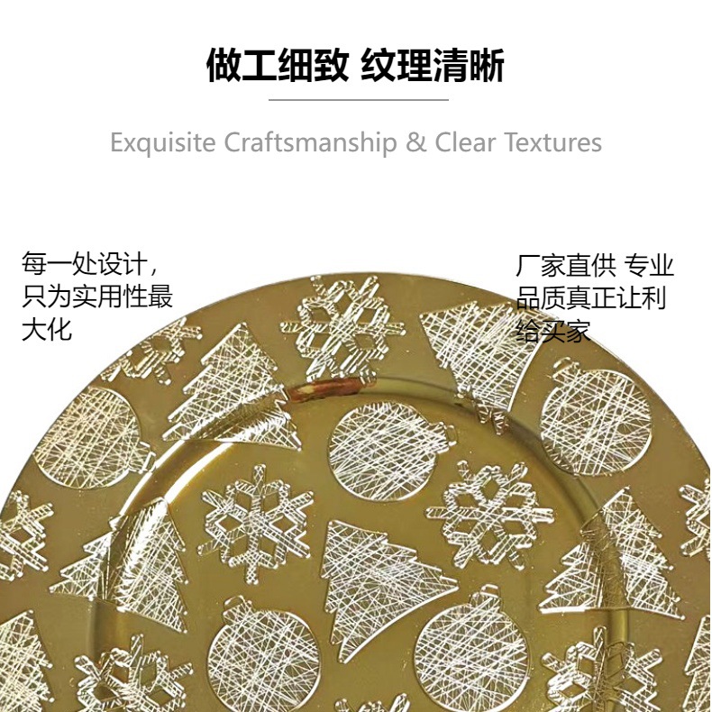 工厂直销外贸圣诞系列charger plates欧式复古托盘西餐厅高级金色 投诉