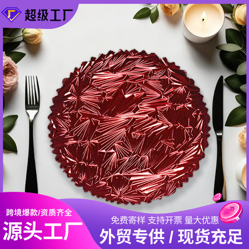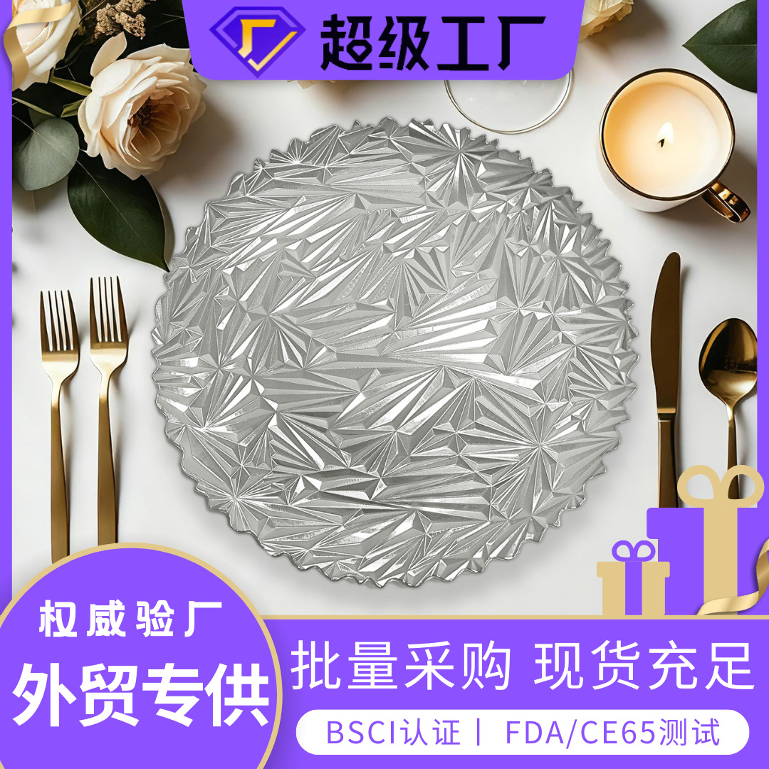 沃居金色碎玻璃款Charger Plate 一次性轻奢风装饰盘 婚礼果盘宴