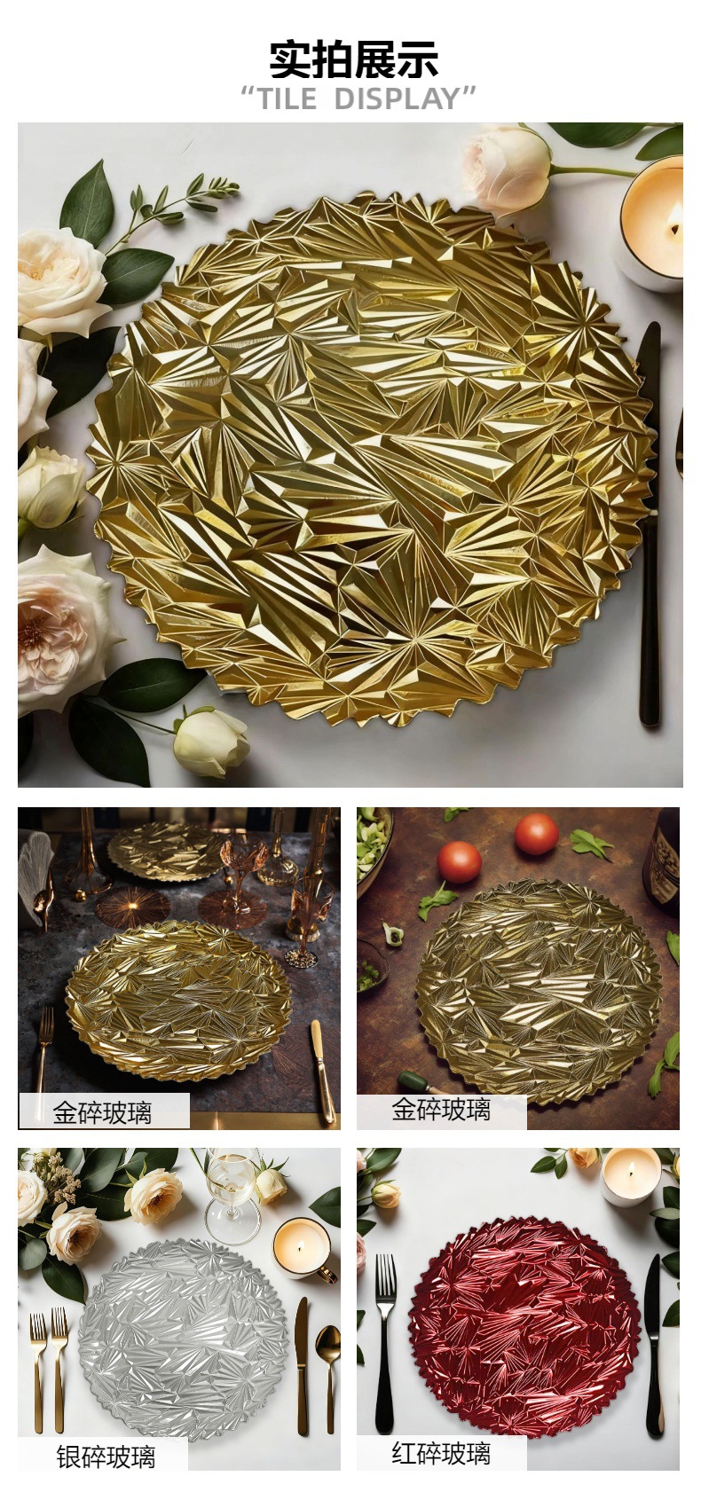 沃居金色碎玻璃款Charger Plate 一次性轻奢风装饰盘 婚礼果盘宴 投诉
