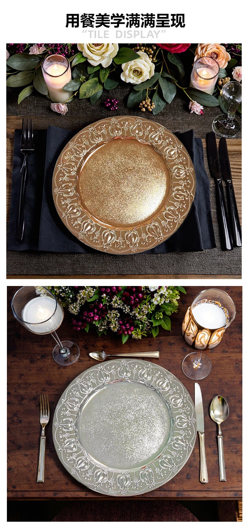 工厂供应塑料装饰盘 优质工艺塑料装饰盘 桌面摆拍电镀款