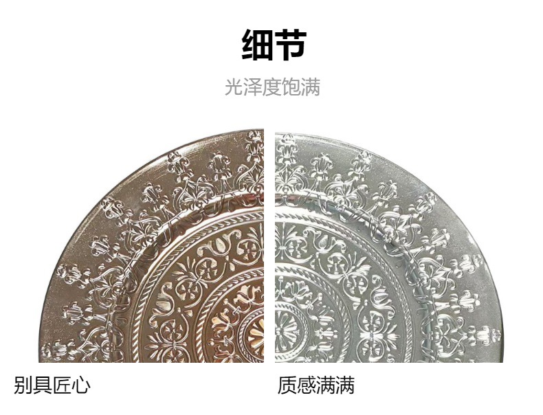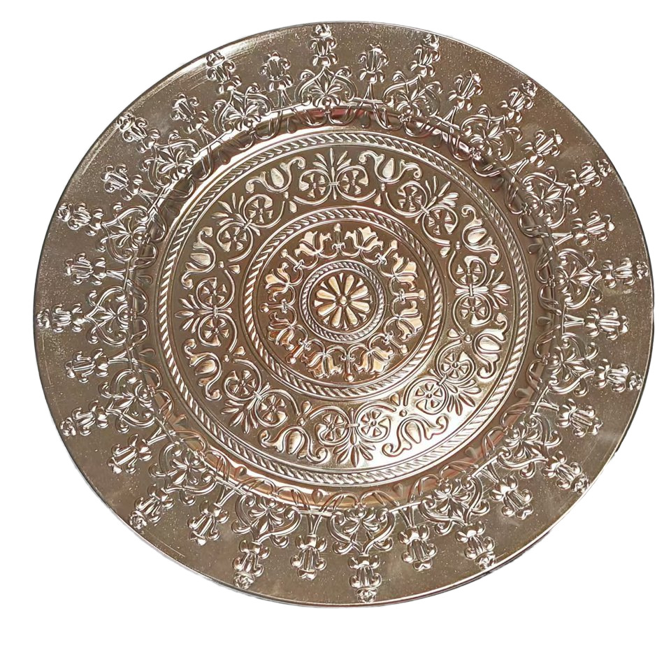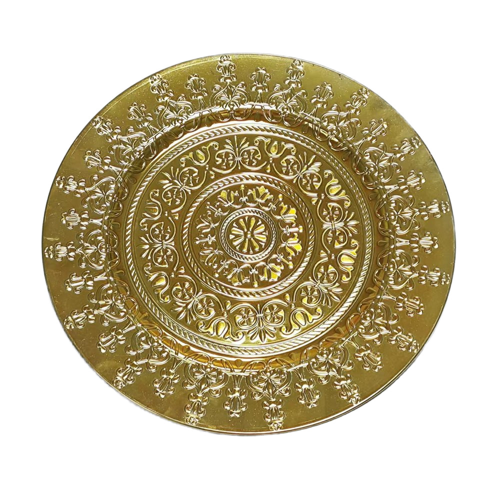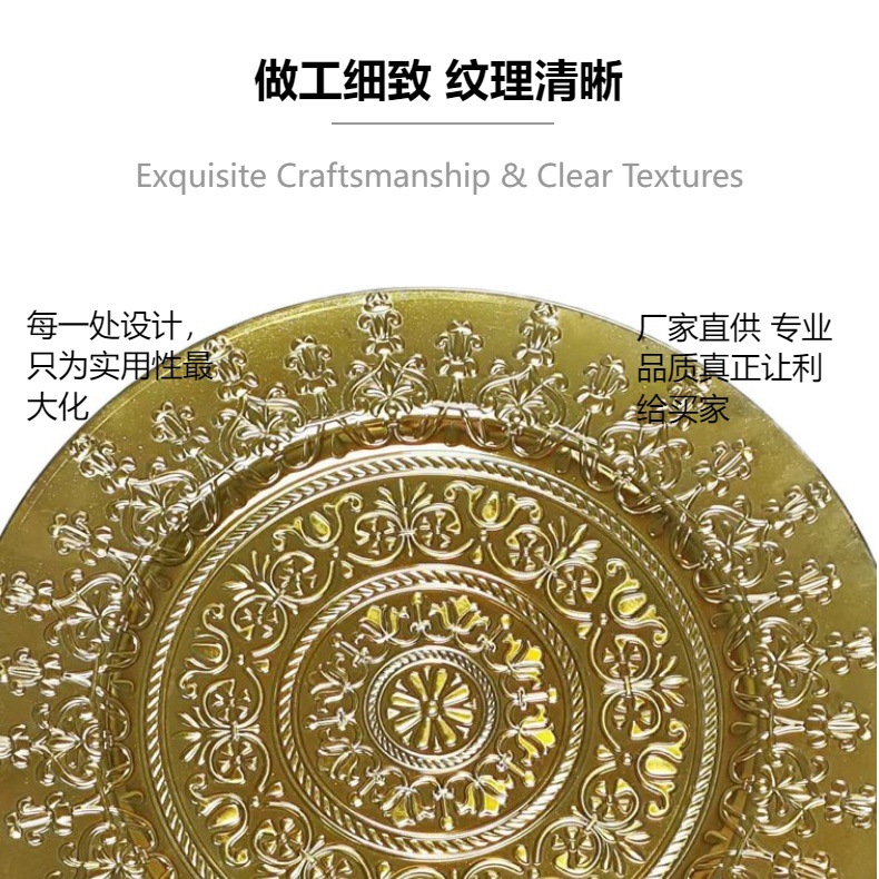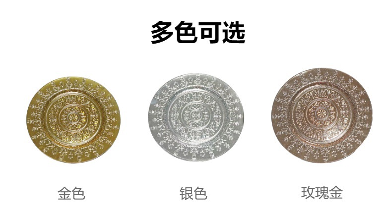 工厂直销美式复古外贸婚礼酒店派对工艺盘装饰塑料盘charger plat 投诉
