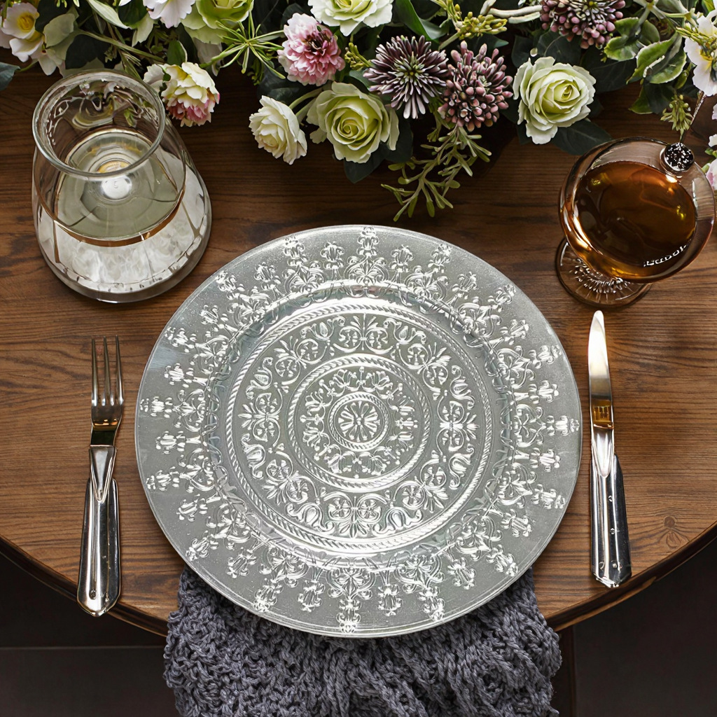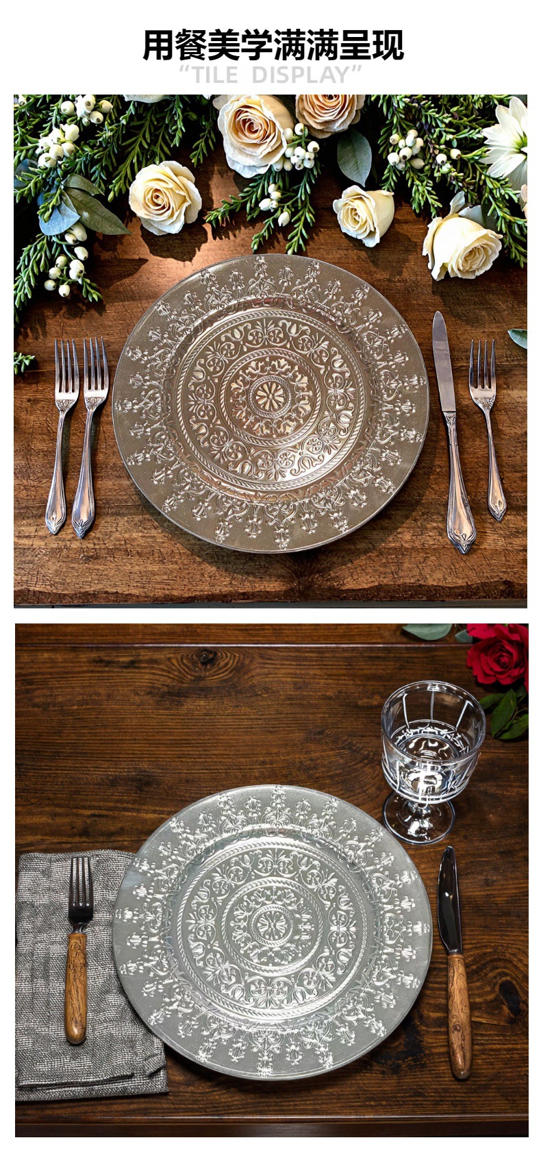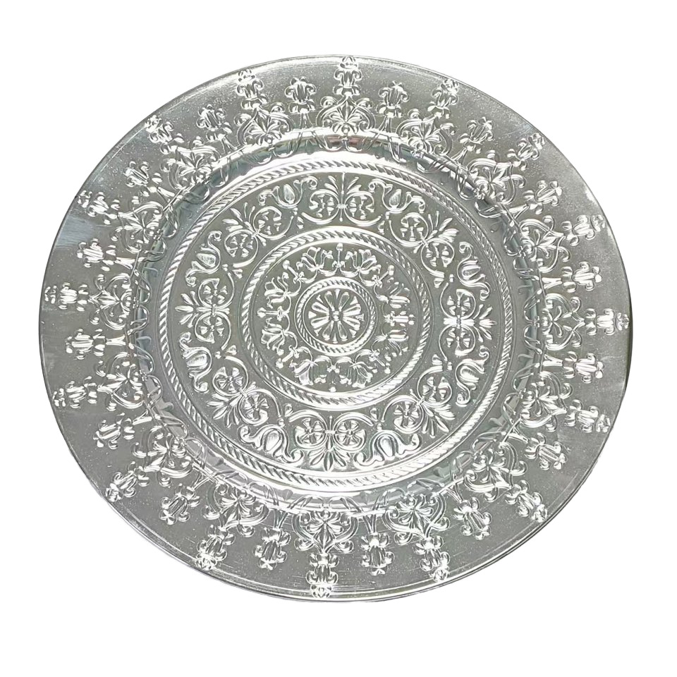 工厂直销美式复古外贸婚礼酒店派对工艺盘装饰塑料盘charger plat 投诉