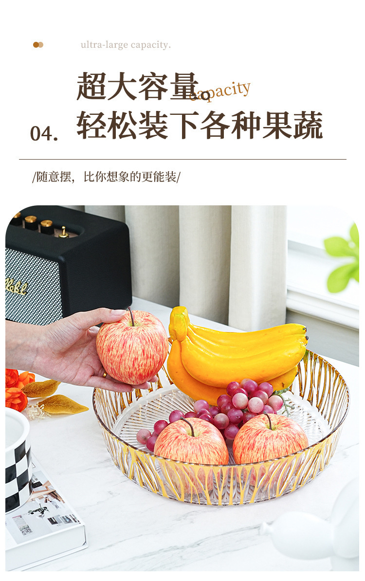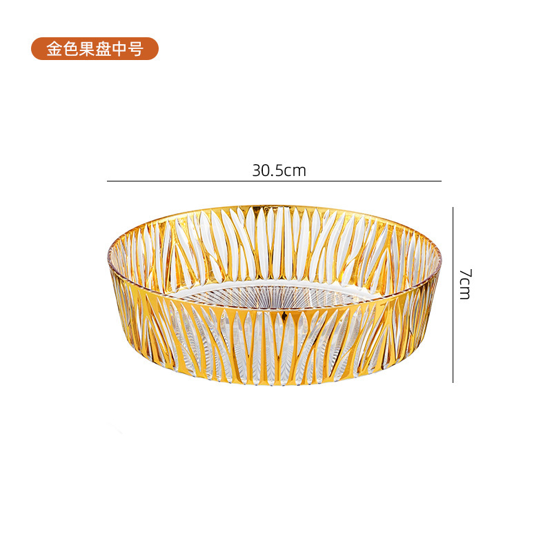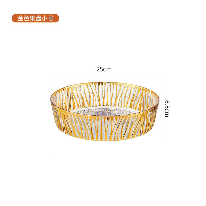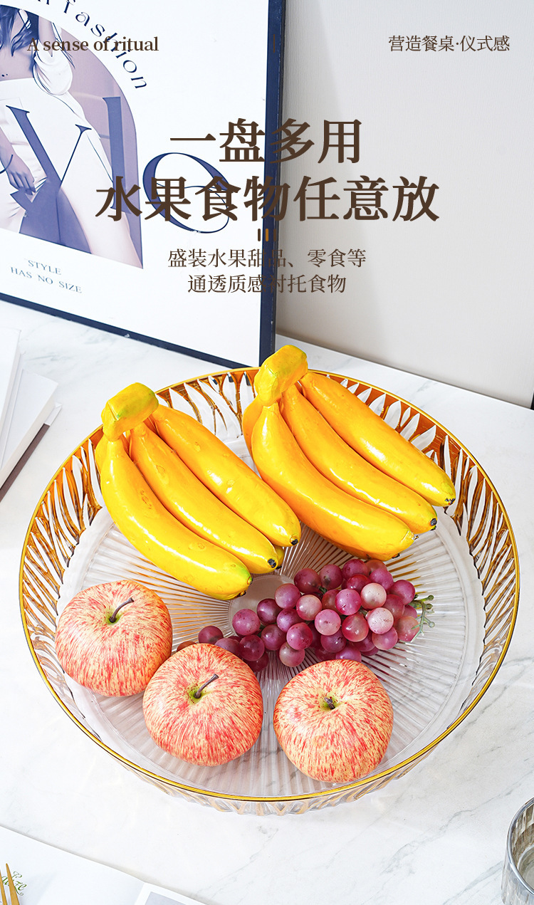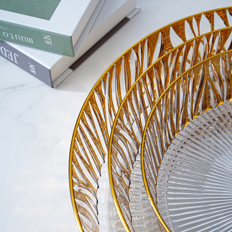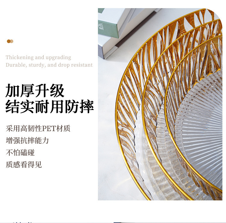 跨境圆形金色奢华水果盘果盘透明塑料盘子客厅茶几零食盘糖果盘