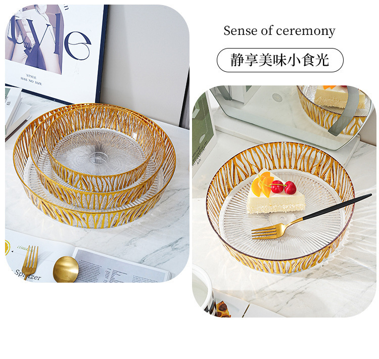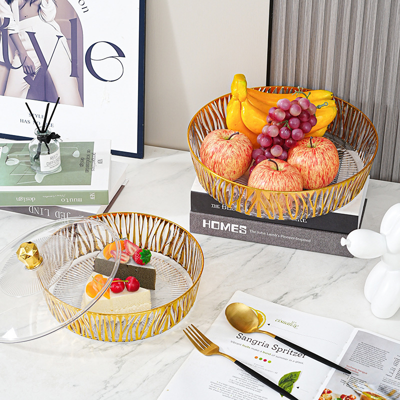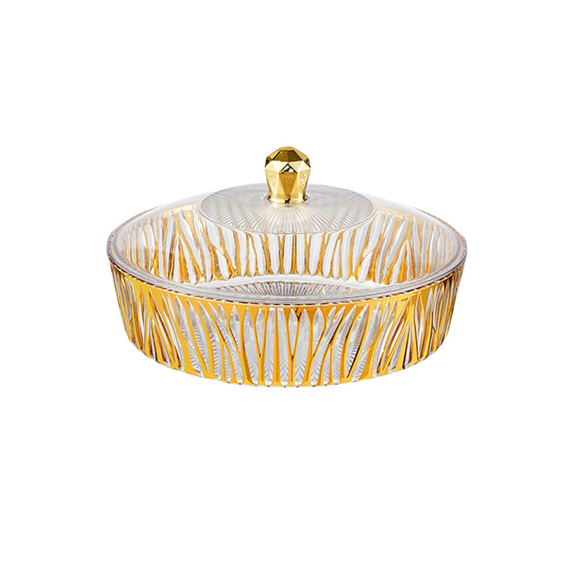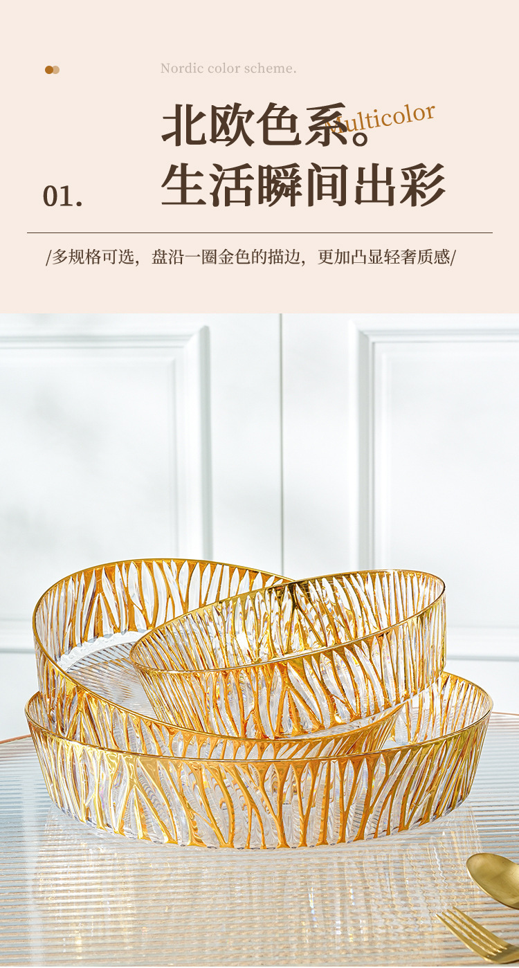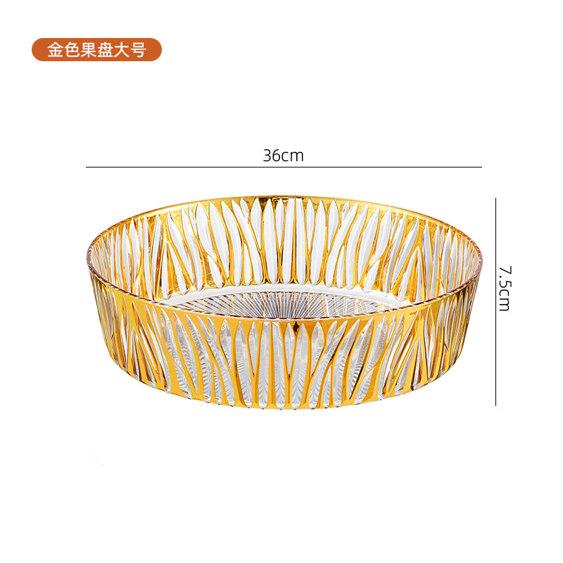 跨境圆形金色奢华水果盘果盘透明塑料盘子客厅茶几零食盘糖果盘