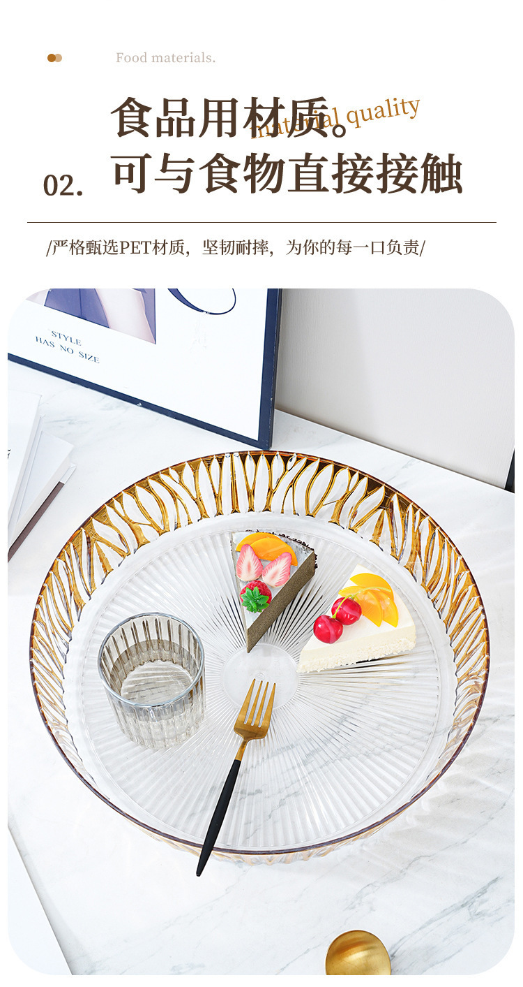 跨境圆形金色奢华水果盘果盘透明塑料盘子客厅茶几零食盘糖果盘 投诉