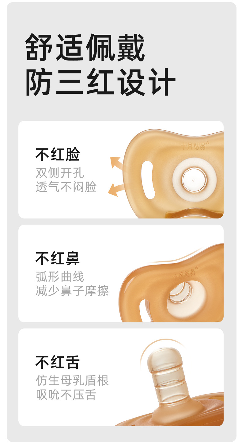产品类别: 安抚奶嘴 材质: 硅橡胶 适用年龄: 其他 品牌: 十月结晶 产地: 中国大陆 是否进口: 否 货号: 硅胶安抚奶嘴SH3519 是否跨境出口专供货源: 否 重量: 0.253 kg/套