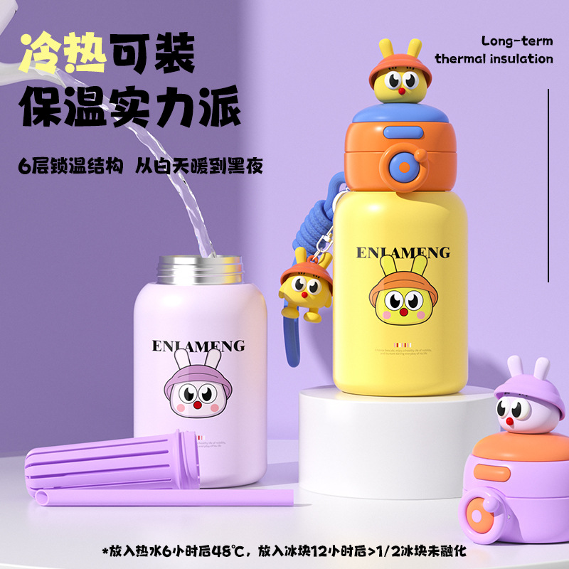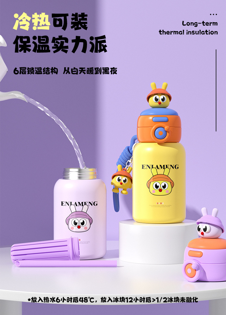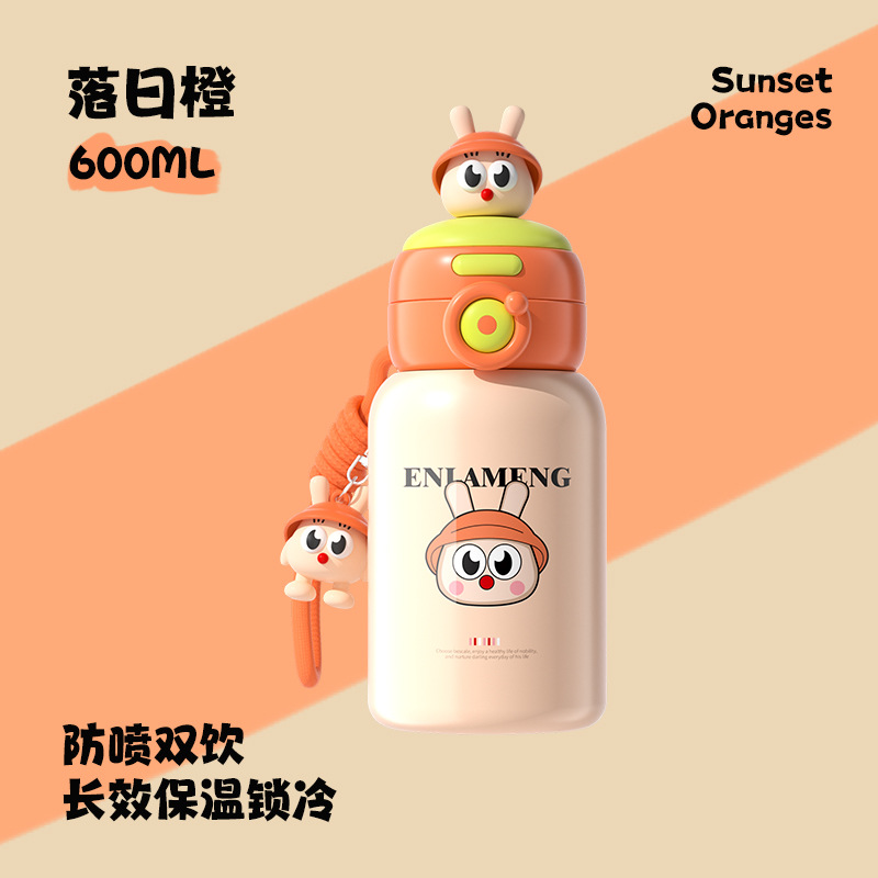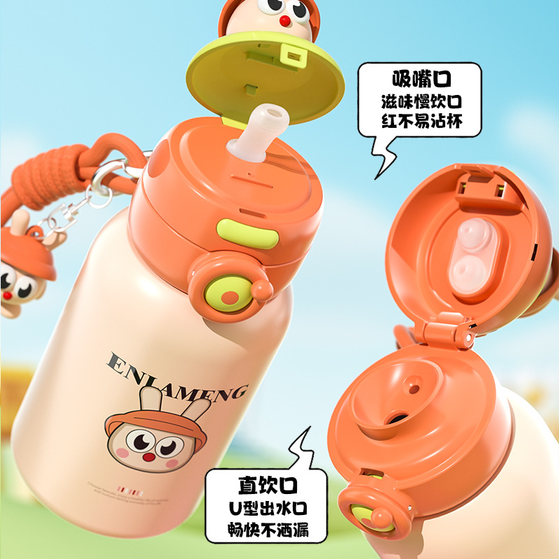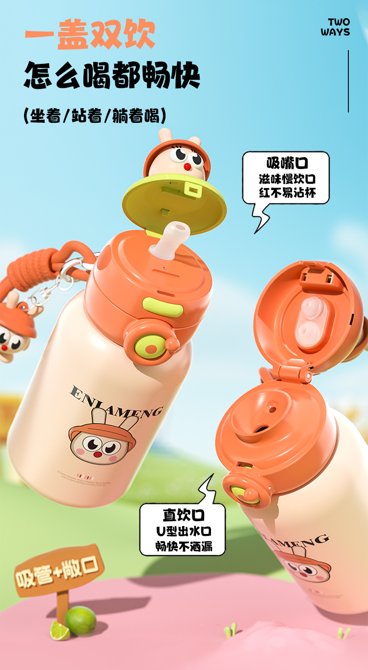 316 不锈钢保温学饮杯 600ml 6 个月 + 1-3 岁宝宝吸管杯防漏跨境