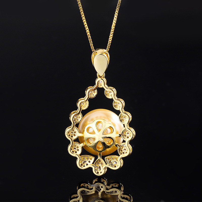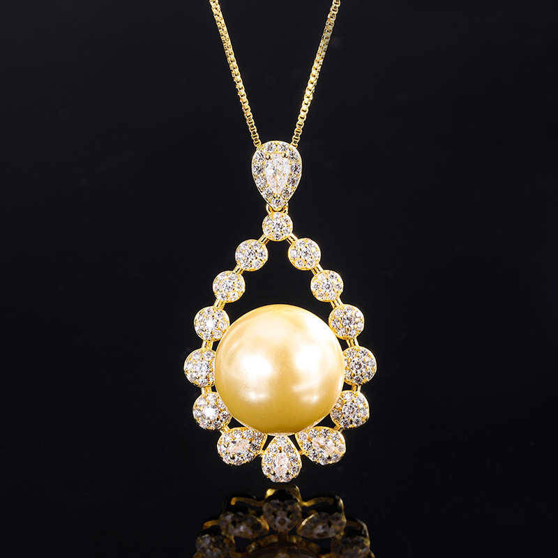 铜底镀金wish热卖镶嵌贝母珍珠韩版时尚独立包装镶钻吊坠项链14mm 投诉