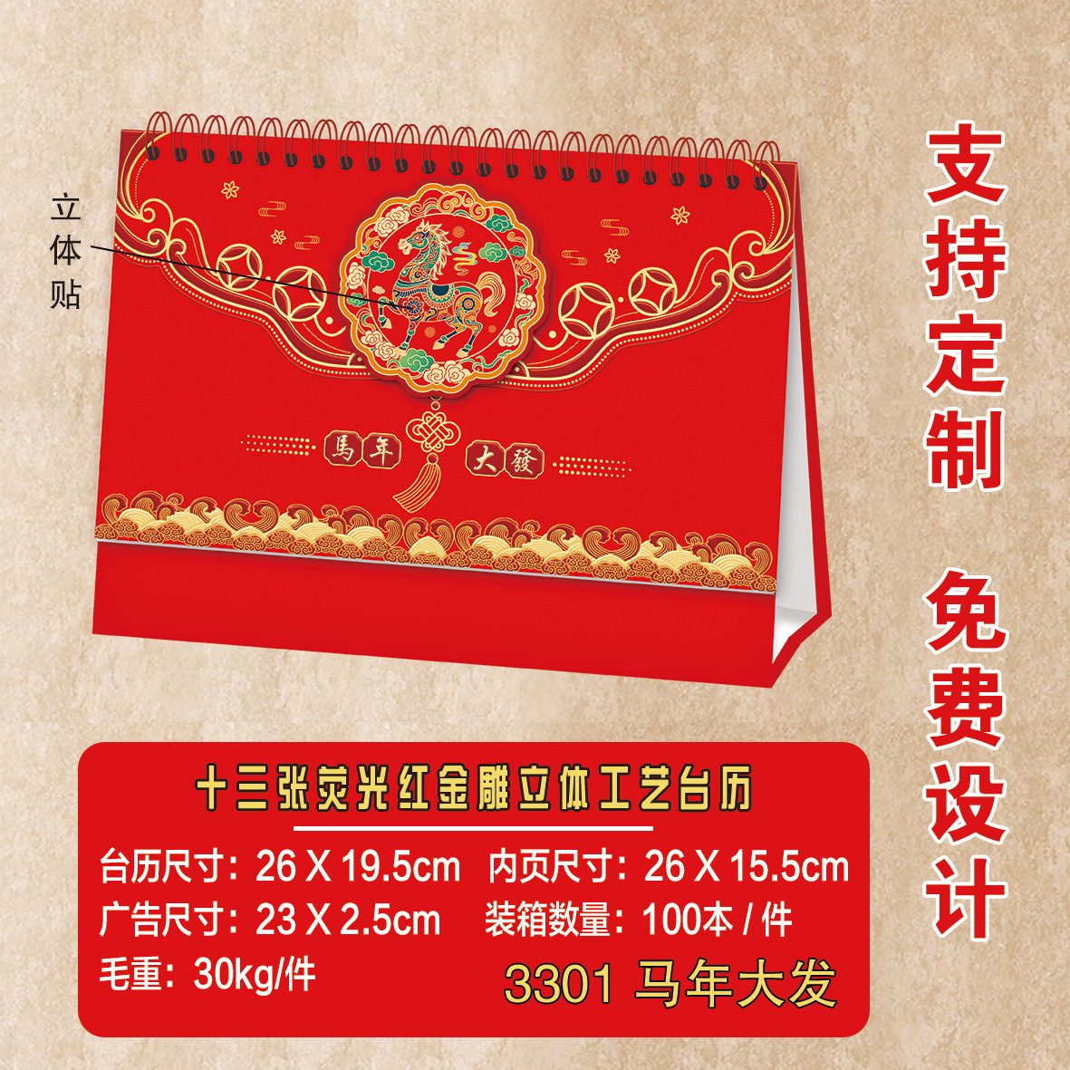 FG3301大号立体十三张台历-马年大发 ¥437 99969本可售