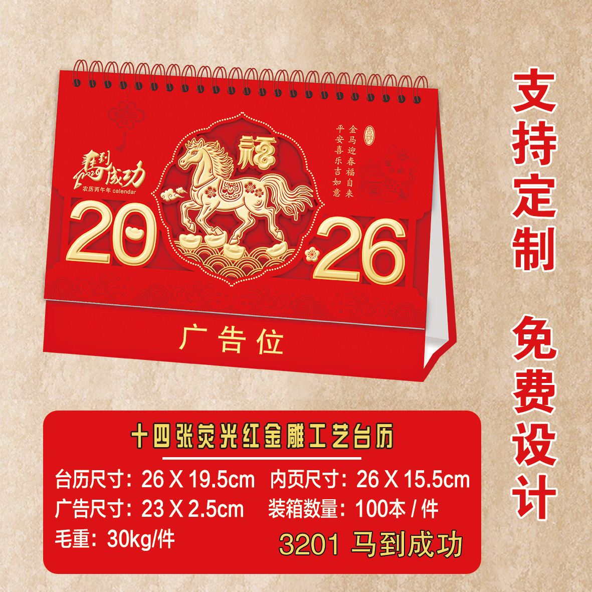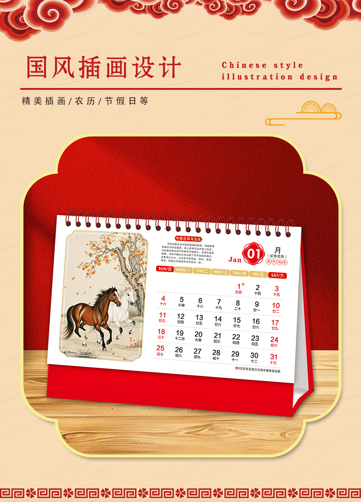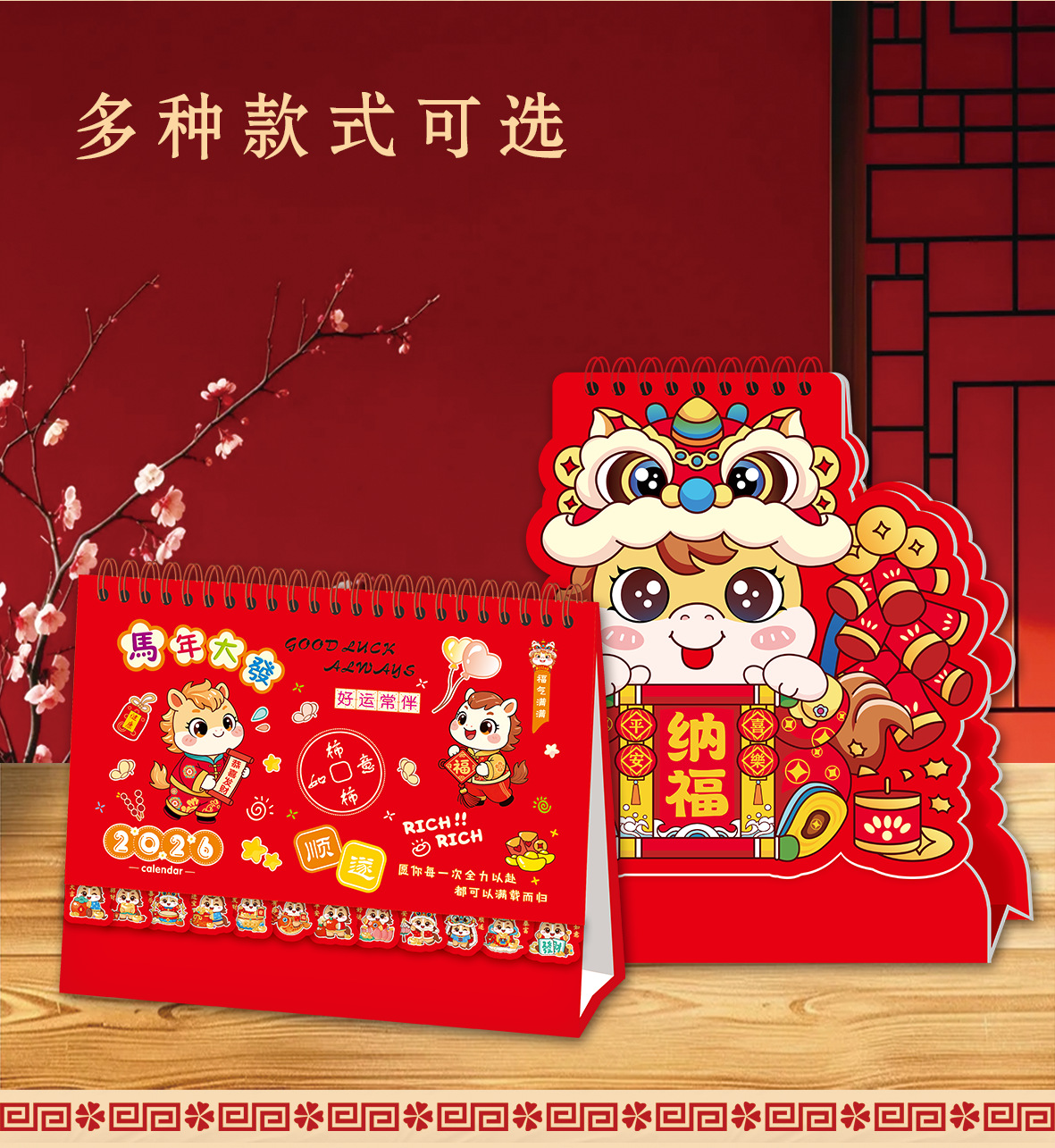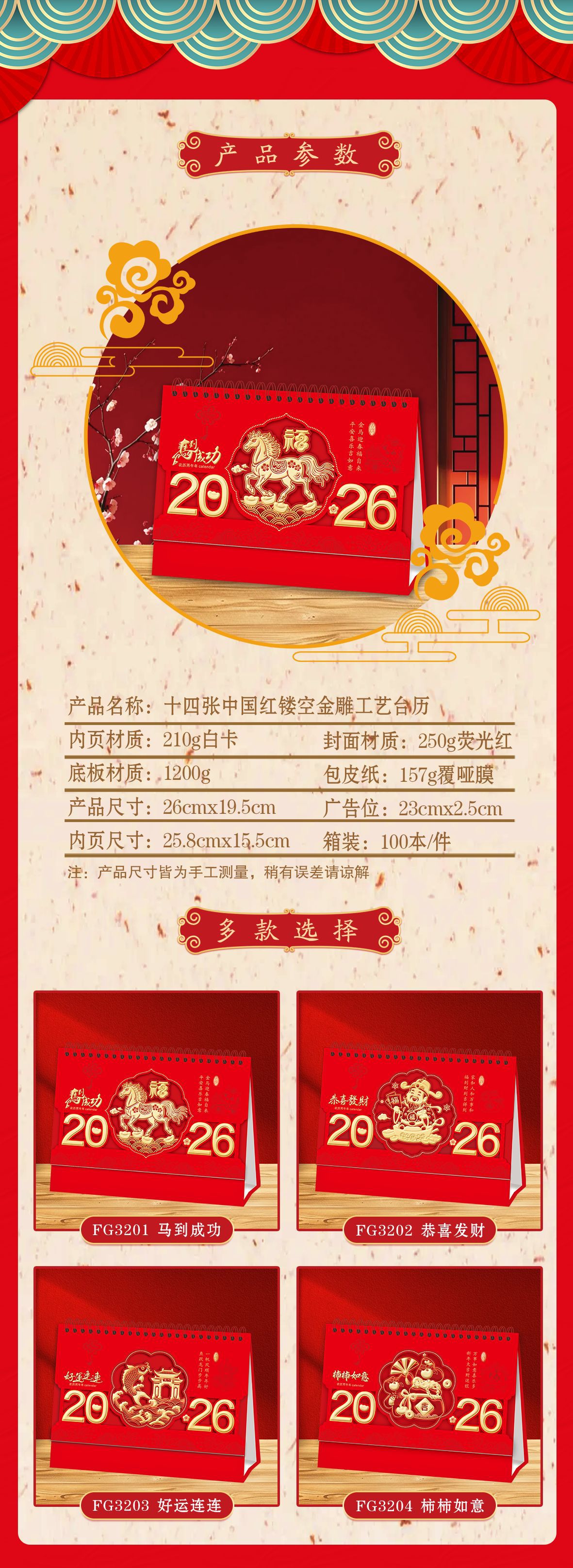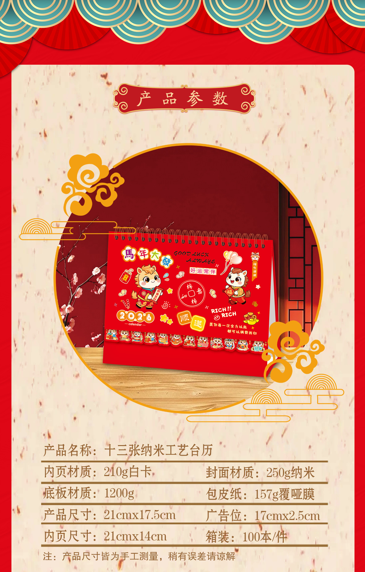 马年新款创意国风可撕书签台历2026纸质喜庆日历商务礼品台历定制 English | 投诉