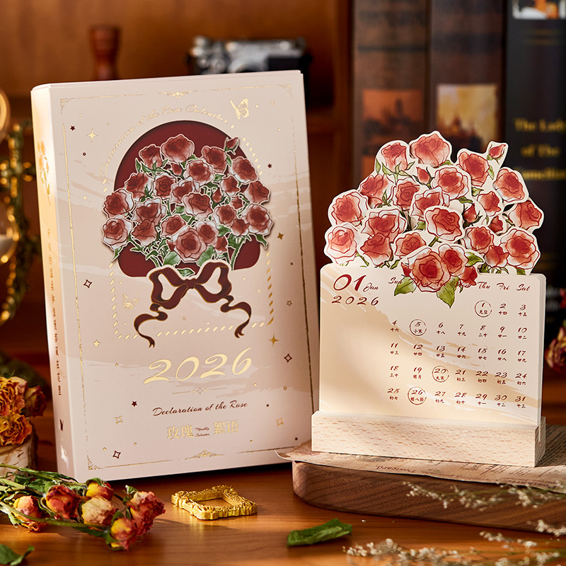 2026玫瑰立体台历浪漫木质桌面日历摆件创意礼物伴手礼月历浪漫 English | 投诉