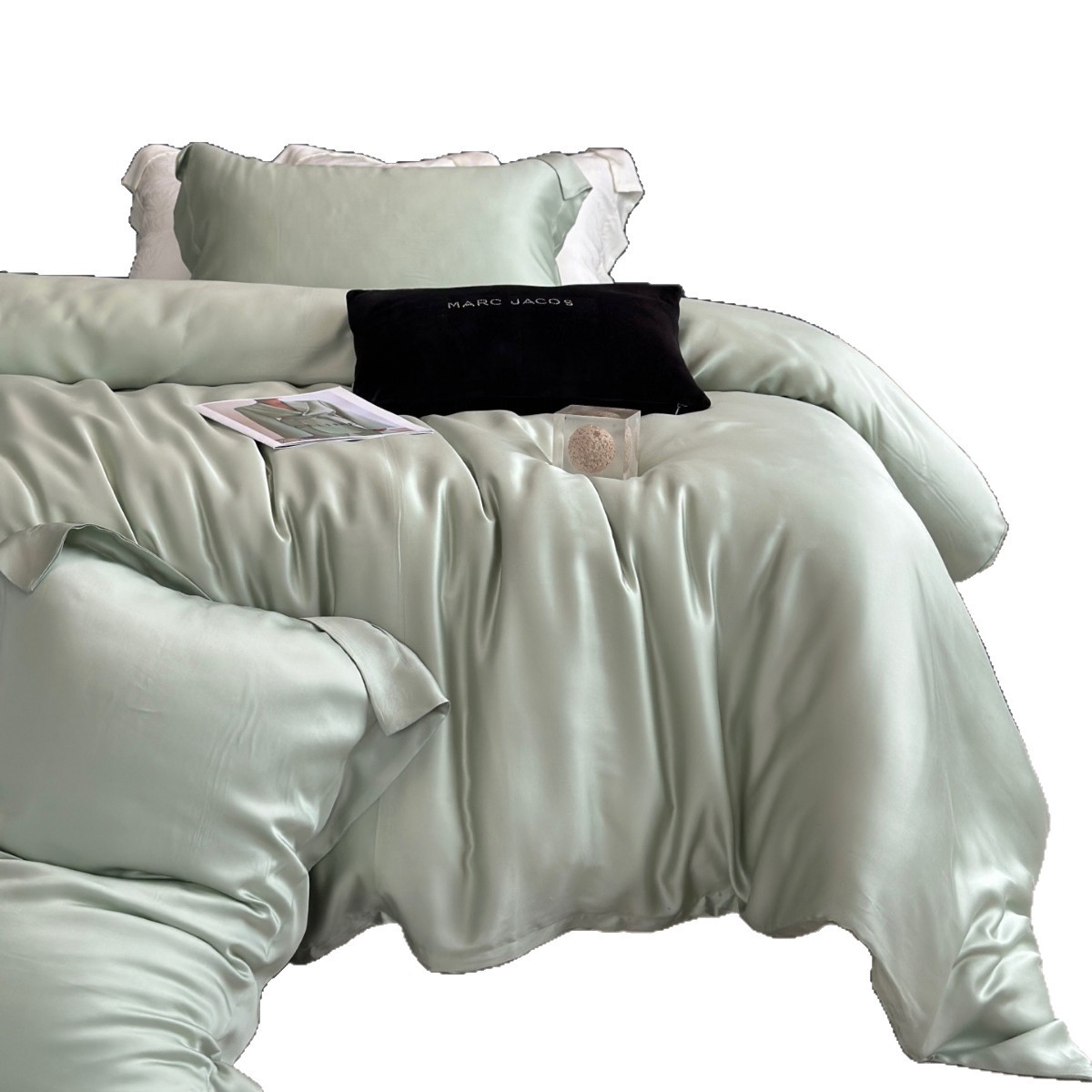 天丝比较真丝价格更亲民,铺盖柔软度亲肤性要好一些,丝滑垂感不变!
