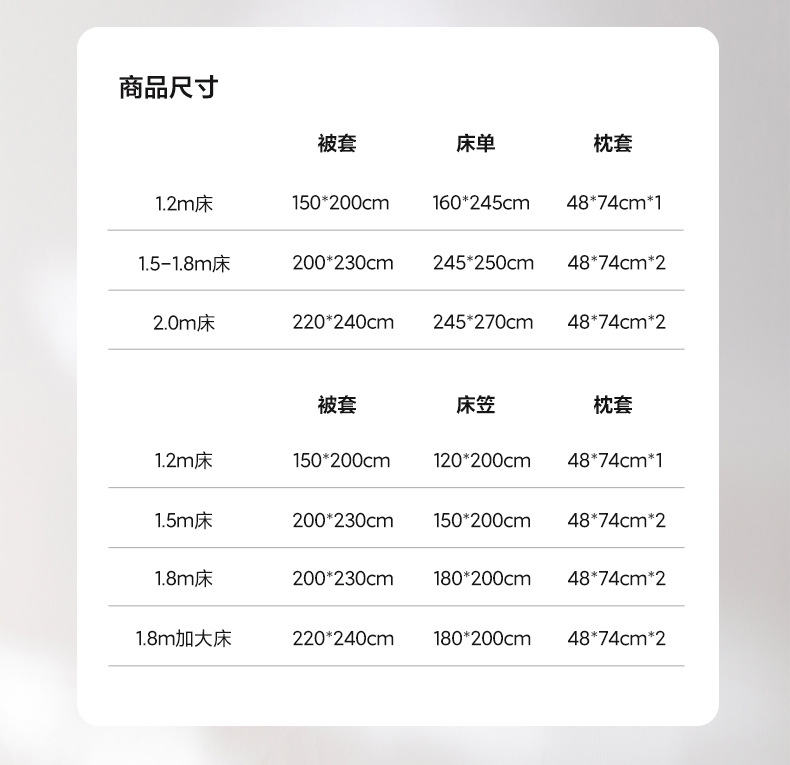 | 单品被套200x230cm | ¥12200 | 999套可售 |