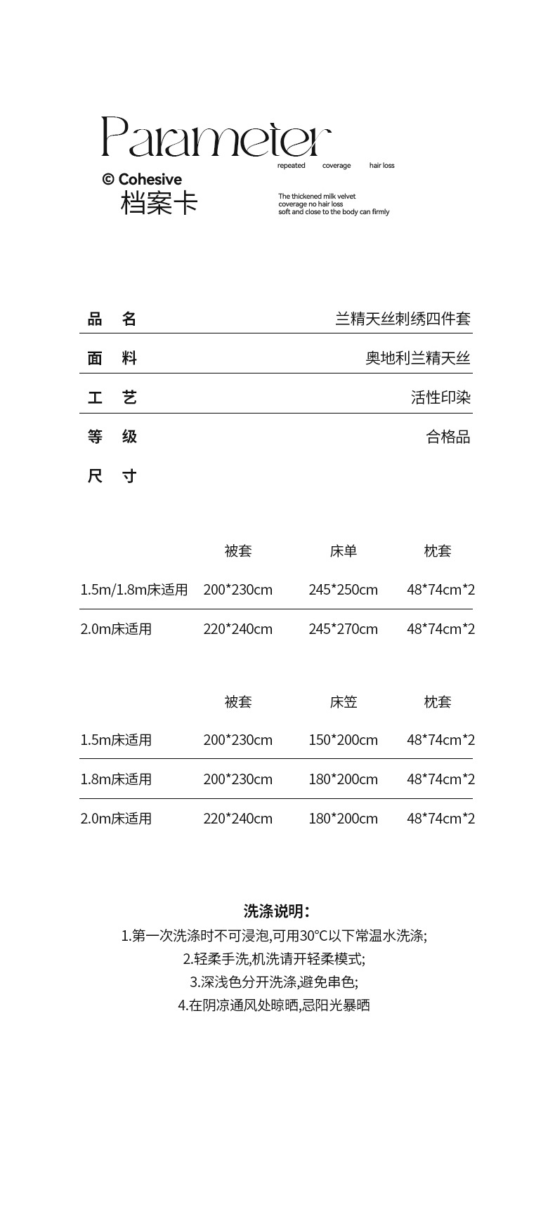 | 适用1.5米床床笠款四件套,建议搭配200*230cm被芯 | ¥28800 | 8888件可售 |