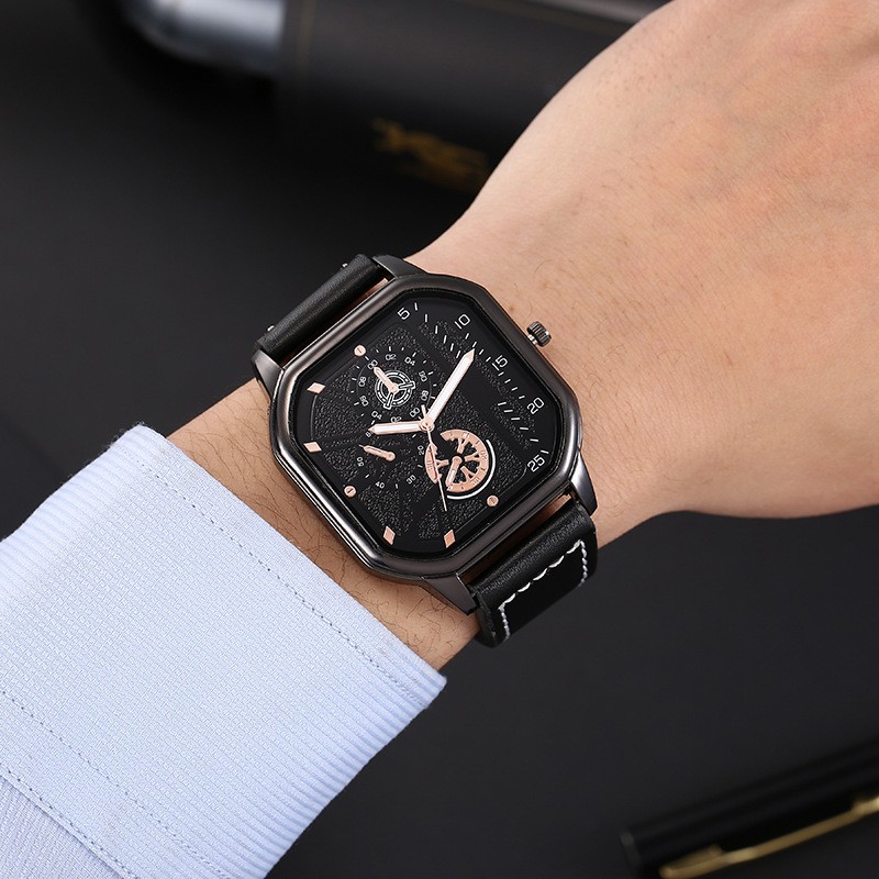 跨境大表盘时尚新款双层面方壳皮带休闲男士运动个性石英手表现货 English | 投诉