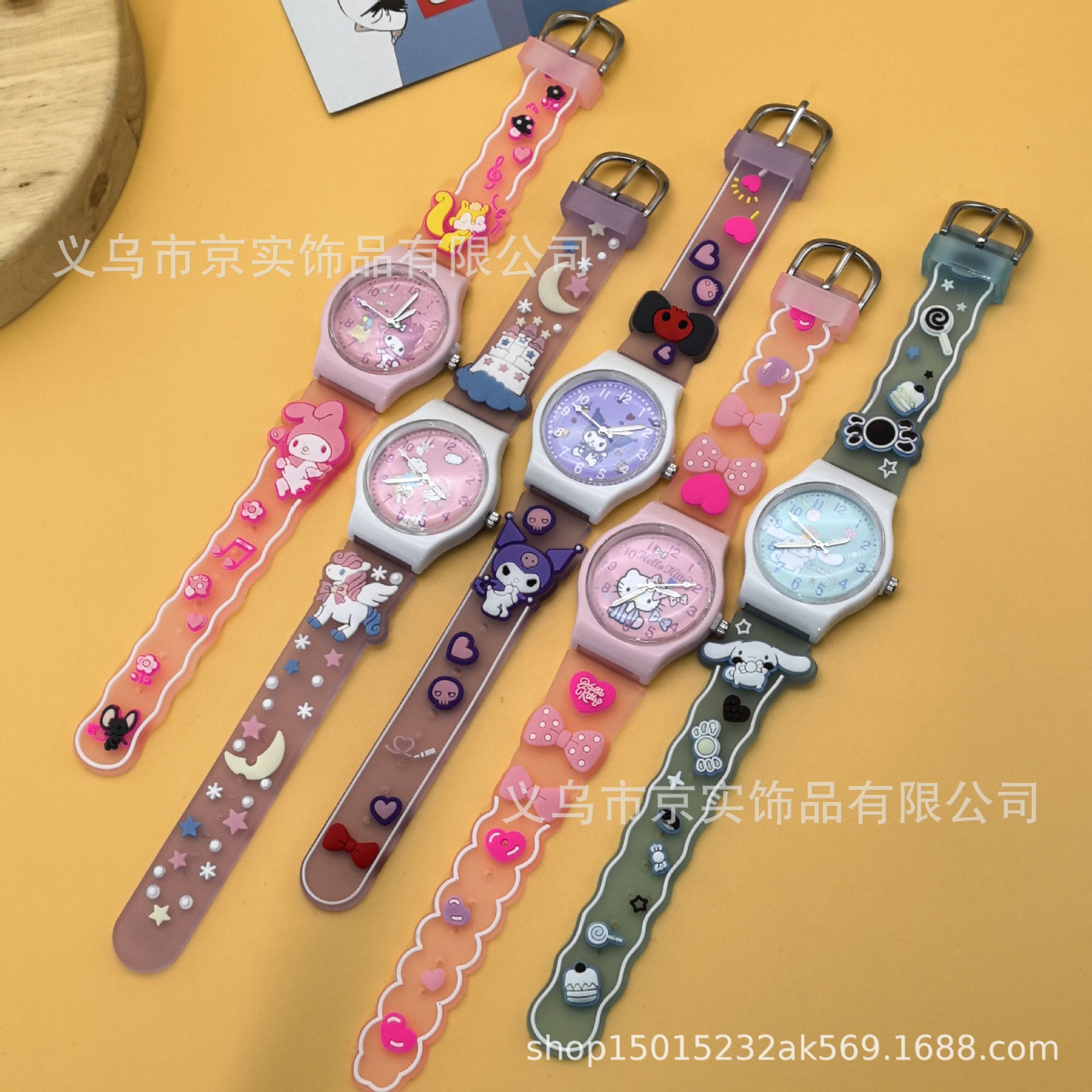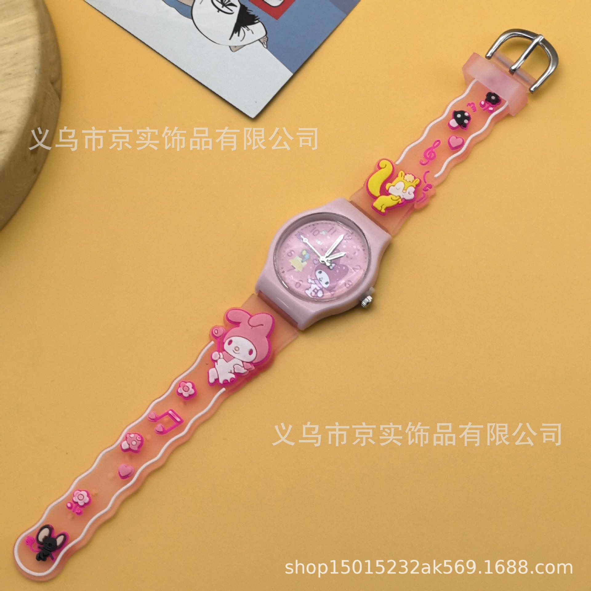 新款男孩女孩通用卡通三丽鸥KT猫库洛米3D表带硅胶儿童手表批发 English | 投诉