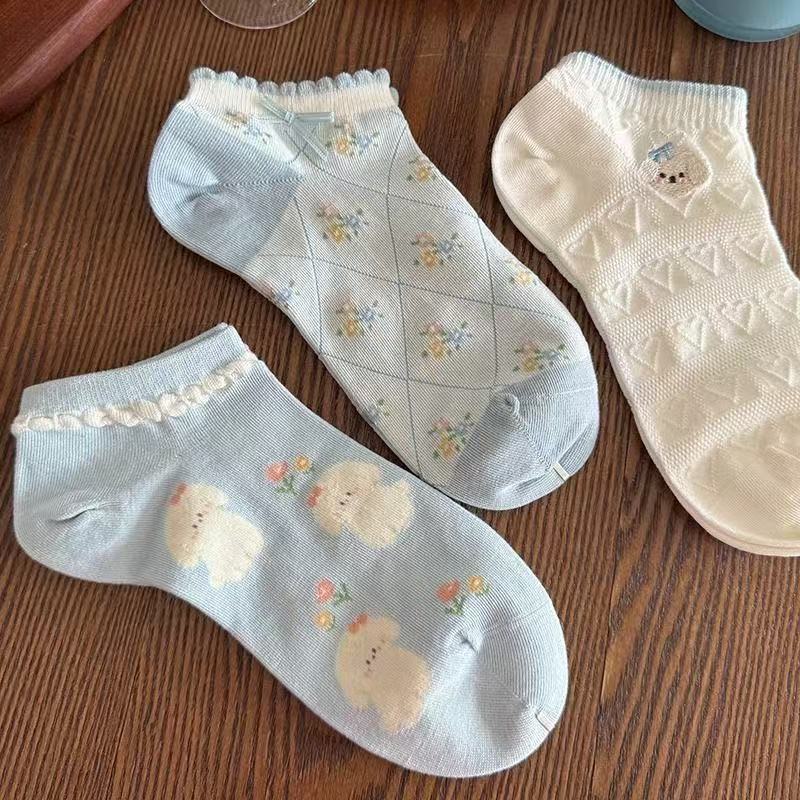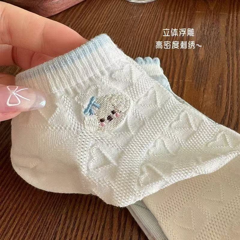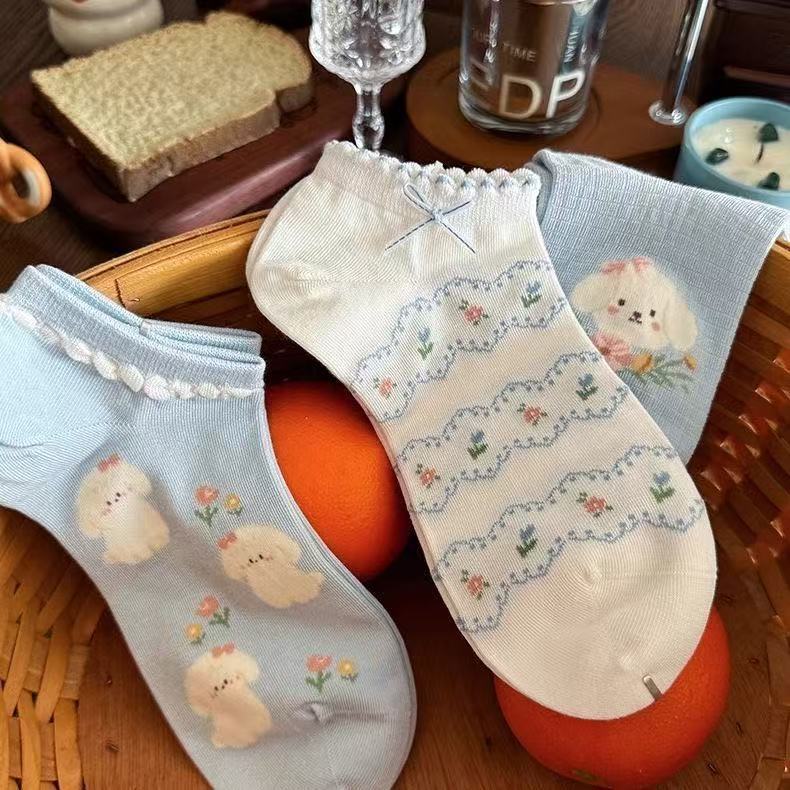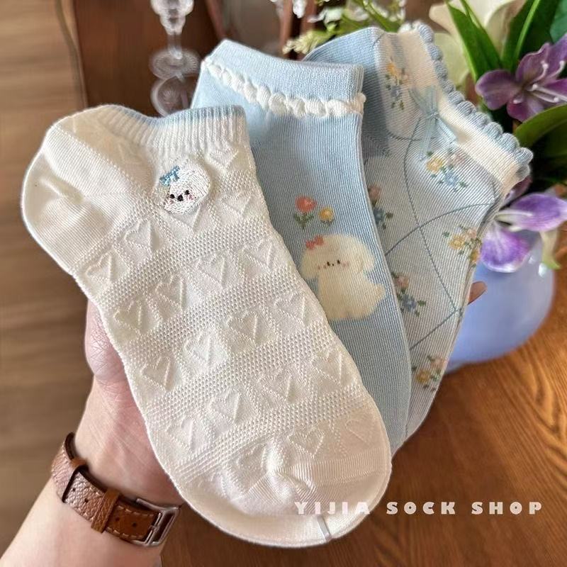 春夏新款小狗袜子短袜蓝白色系立体浮雕刺绣袜森系碎花透气短筒袜 English | 投诉