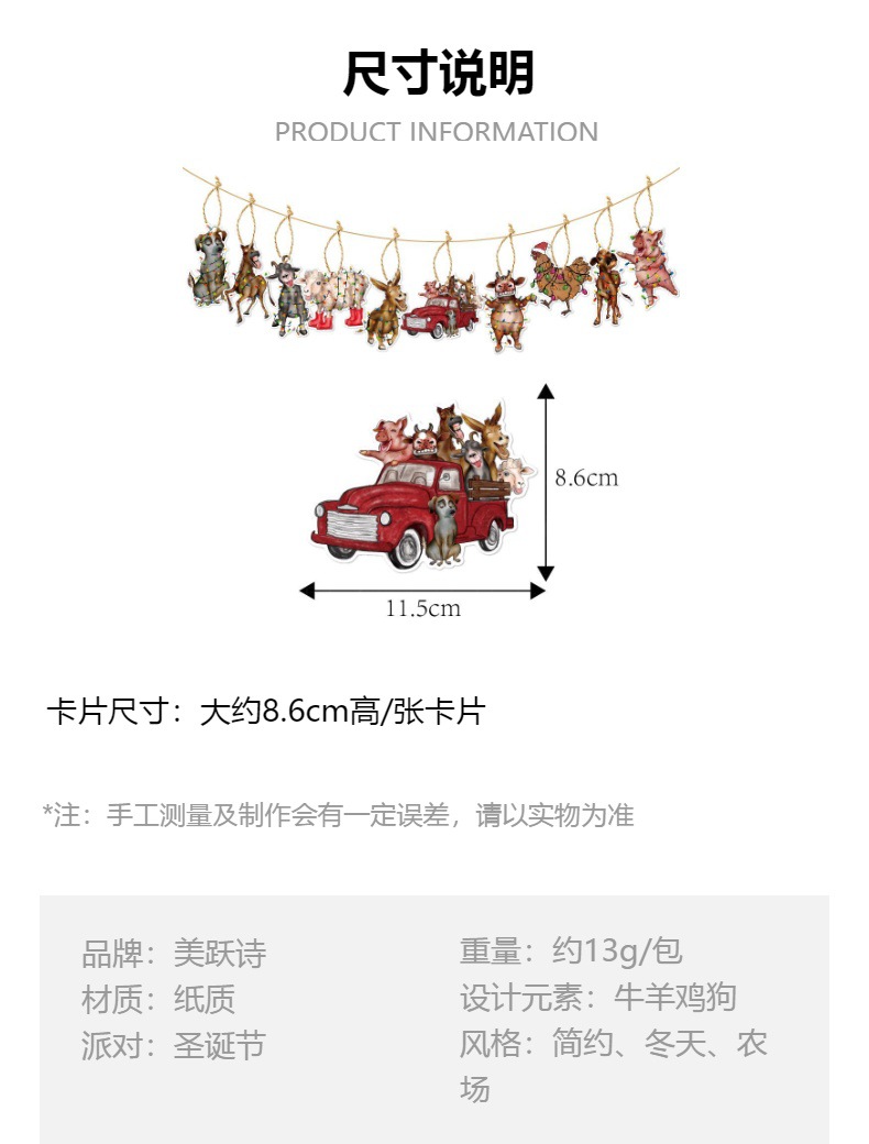 跨境新品圣诞节装饰圣诞树挂饰挂件 农场主题圣诞派对气氛吊饰 投诉