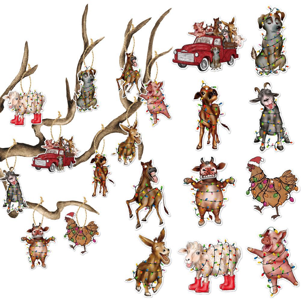 跨境新品圣诞节装饰圣诞树挂饰挂件  农场主题圣诞派对气氛吊饰