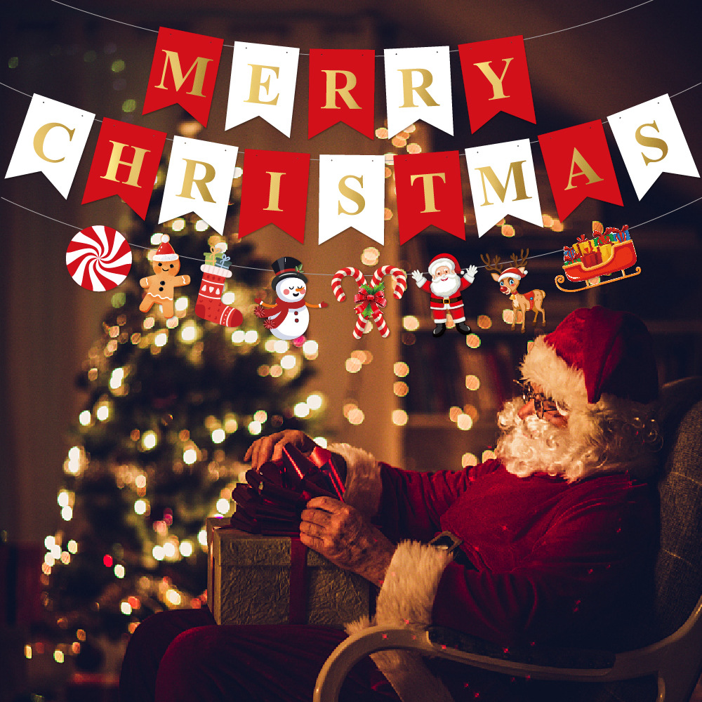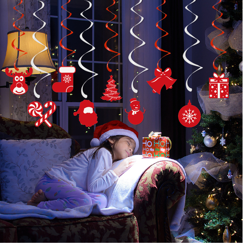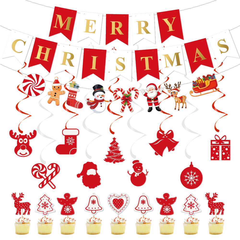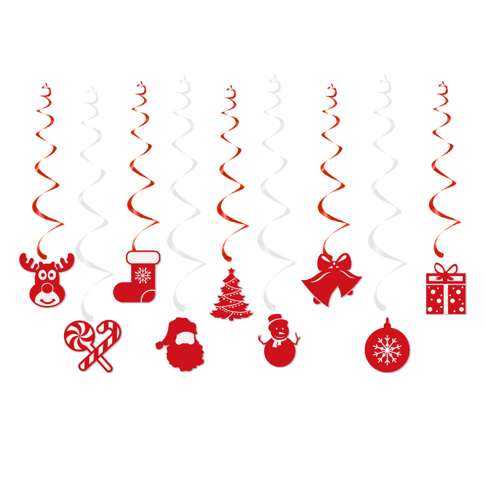 跨境新品圣诞节派对装饰用品 圣诞拉旗横幅圣诞节螺旋挂饰