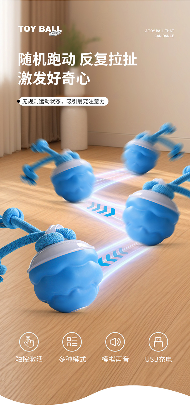 跨境新款充电式逗狗球智能逗狗狗玩具解闷发声自动电动神器
