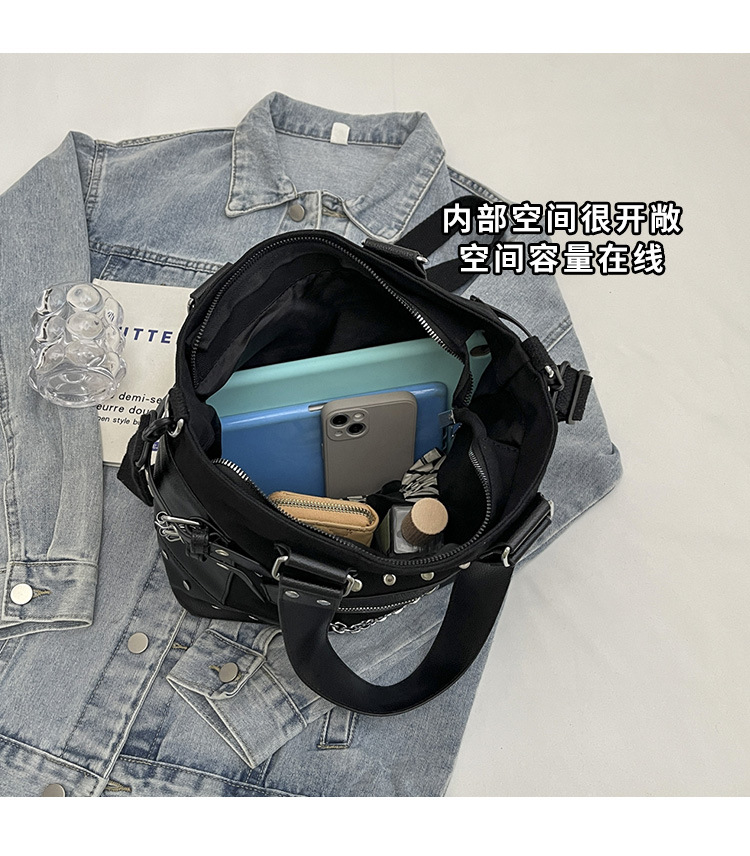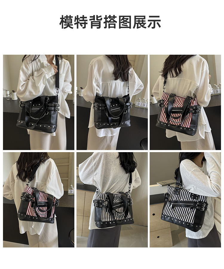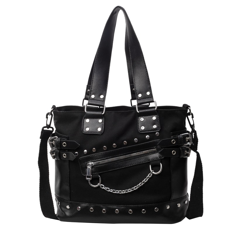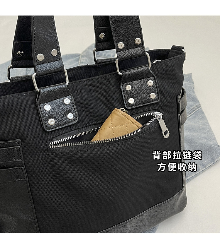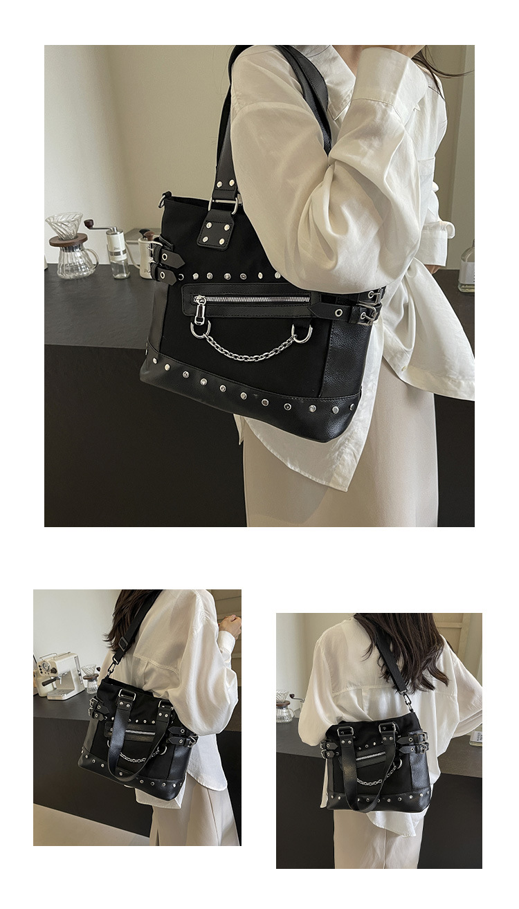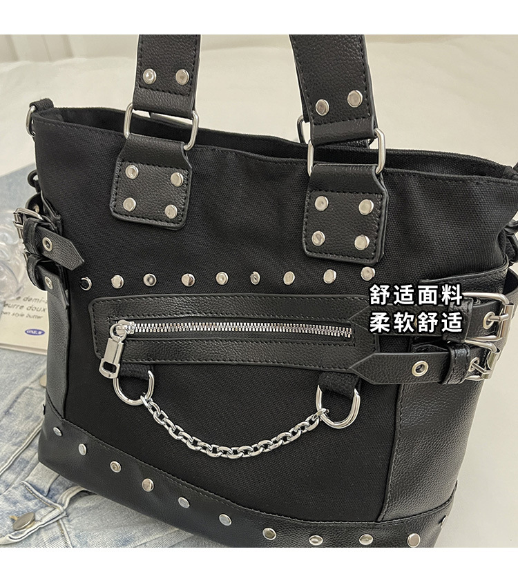 跨境包包女2025秋冬款通勤女大容量单肩斜挎包铆钉拉链手提托特包