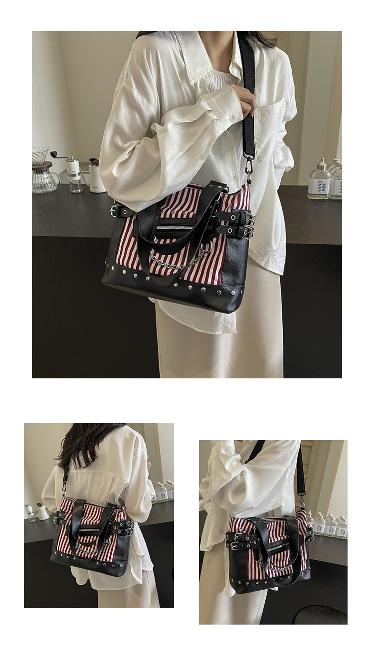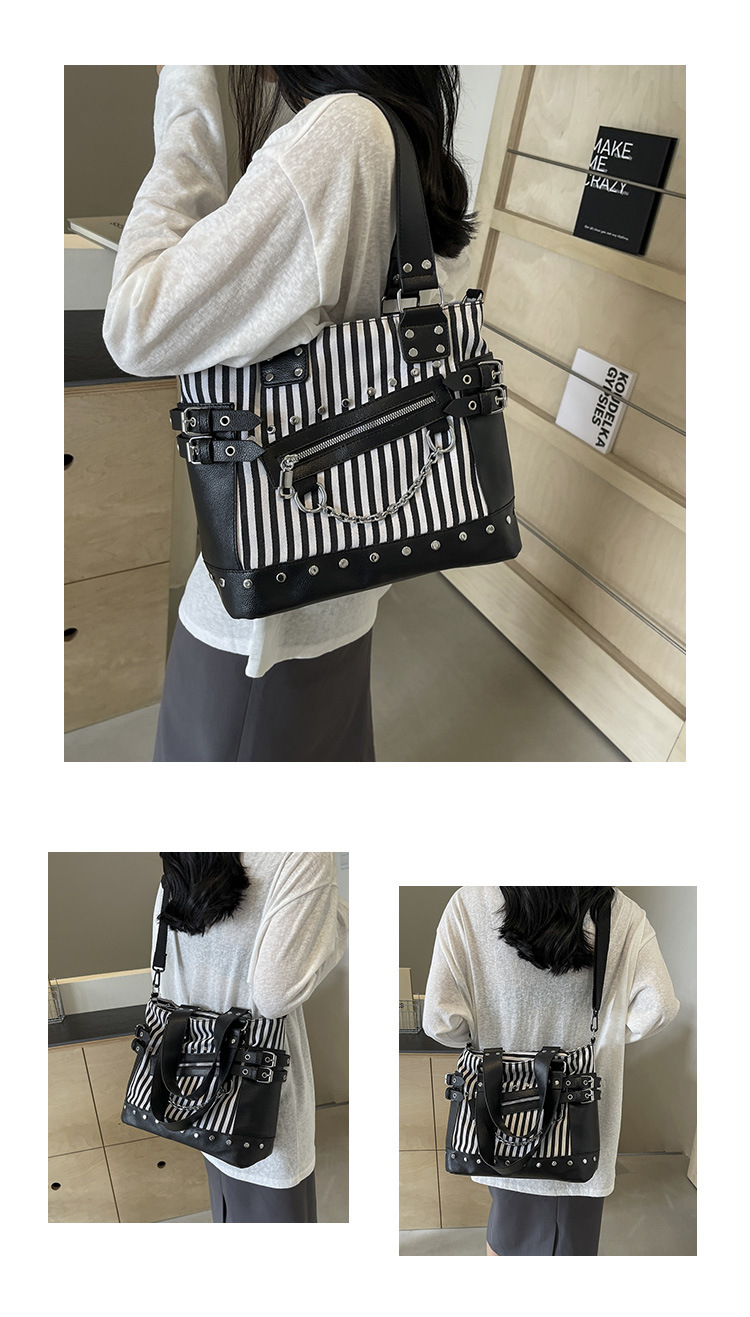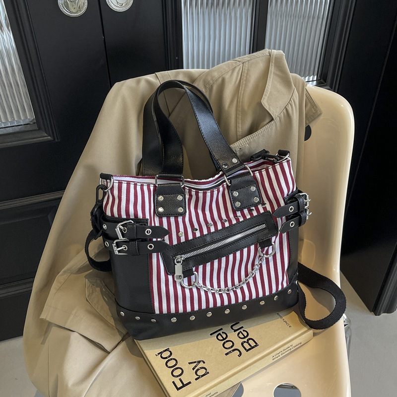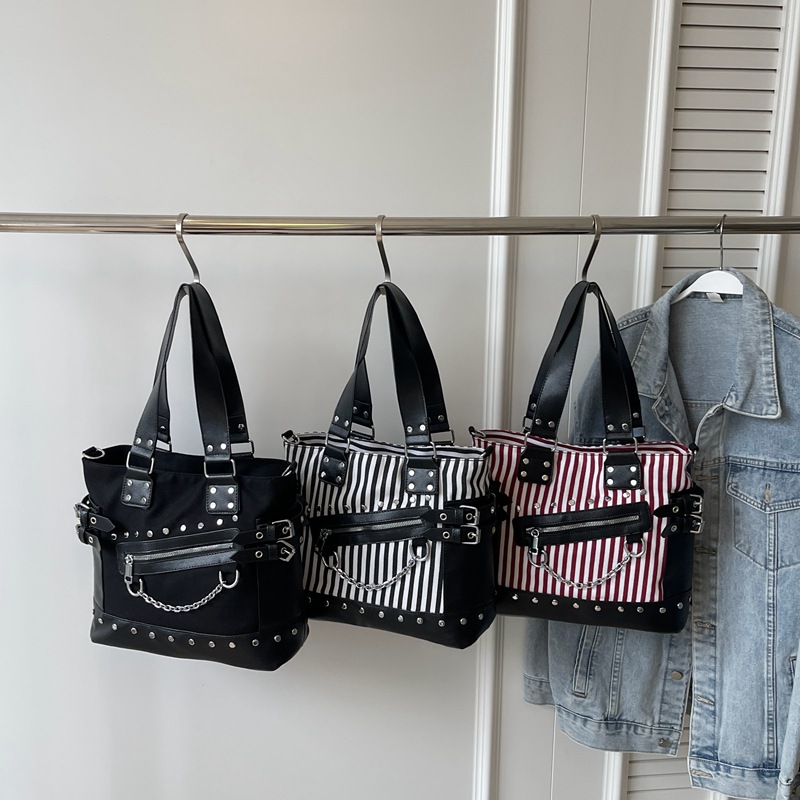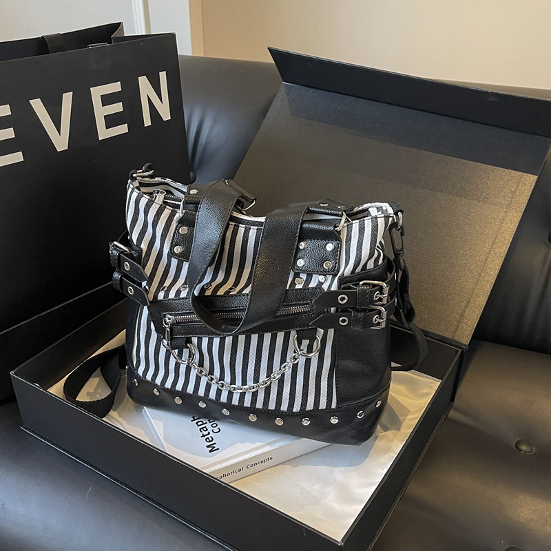 跨境包包女2025秋冬款通勤女大容量单肩斜挎包铆钉拉链手提托特包