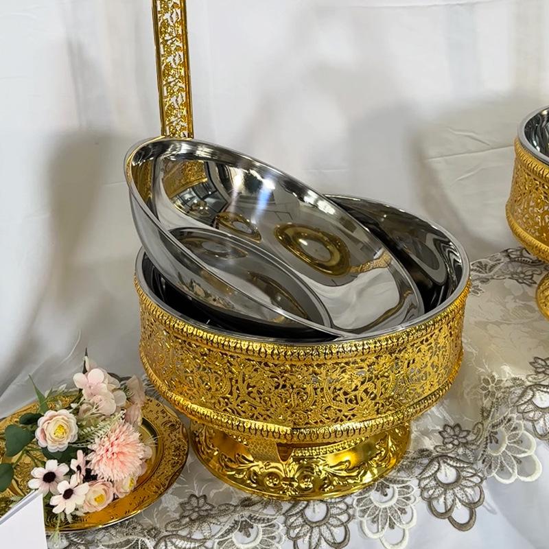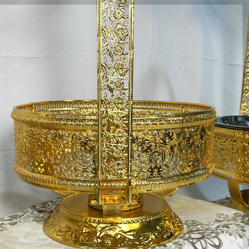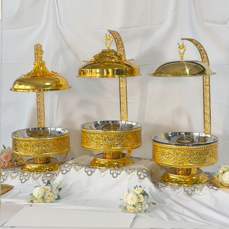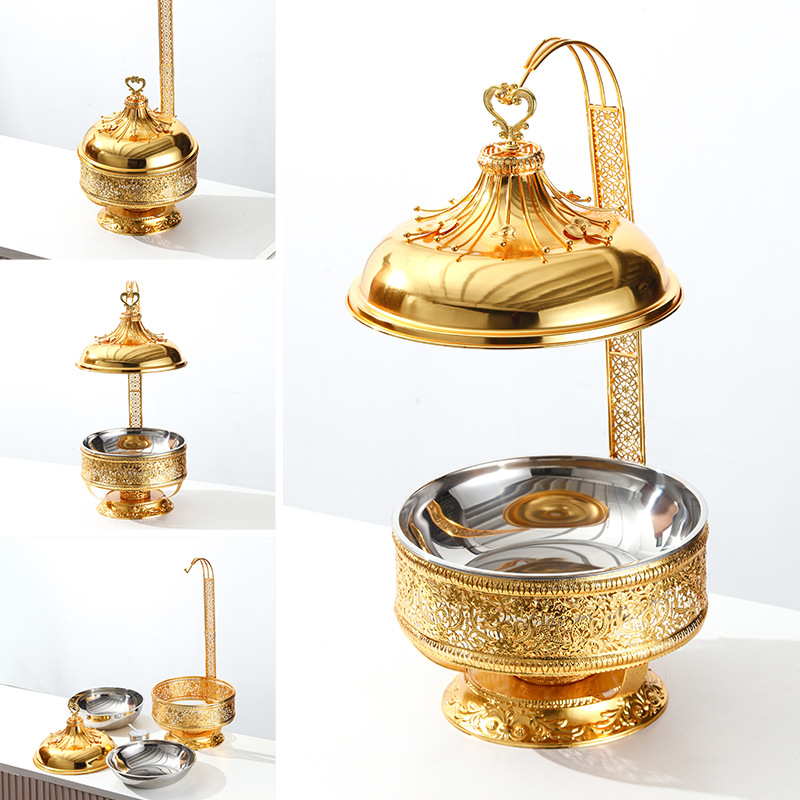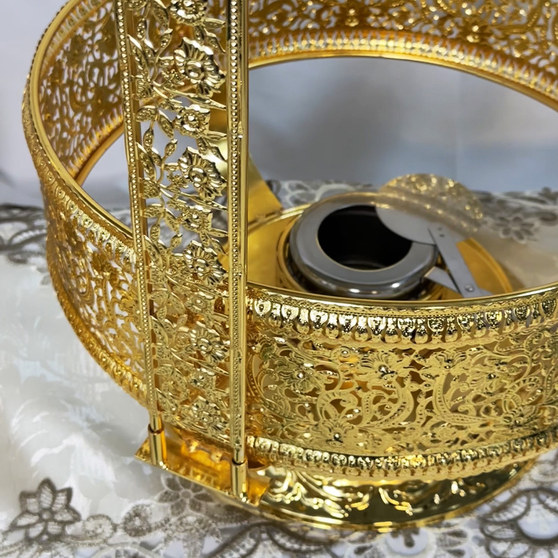 跨境外贸货源中东阿拉伯款金色餐炉金属工艺品酒精自助餐炉布菲炉