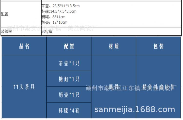 材质: 瓷 风格: 西式 表面工艺: 釉下彩 产品质量等级: 一等品 是否支持订制: 是 组件: 奶壶 是否进口: 否 货号: 1101 产地: 潮州 图案: 多种 颜色: 白色 装箱数: 3 加印LOGO: 不可以 贸易属性: 内贸 包装: 礼盒 产品上市时间: 2017年冬 价格段: 200-300元 是否有专利: 无 是否跨境出口专供货源: 否 重量: 0.186 kg/个