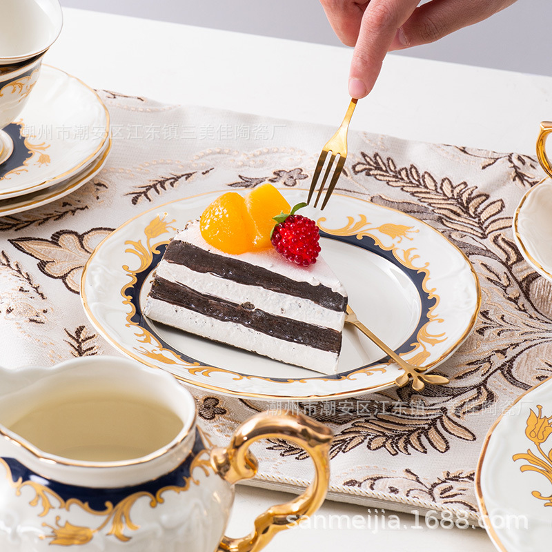 欧式北欧会所别墅餐厅餐桌西式西餐盘餐具套装点心牛排盘子咖啡杯 投诉