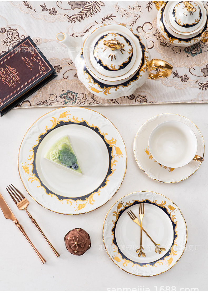欧式北欧会所别墅餐厅餐桌西式西餐盘餐具套装点心牛排盘子咖啡杯