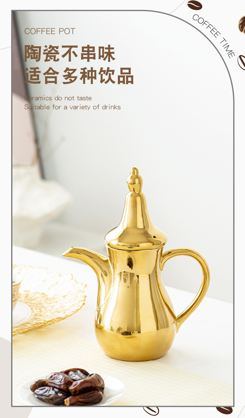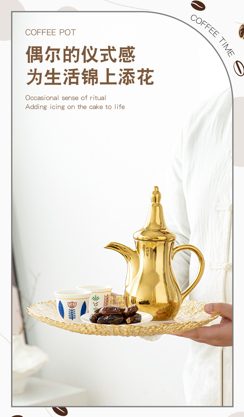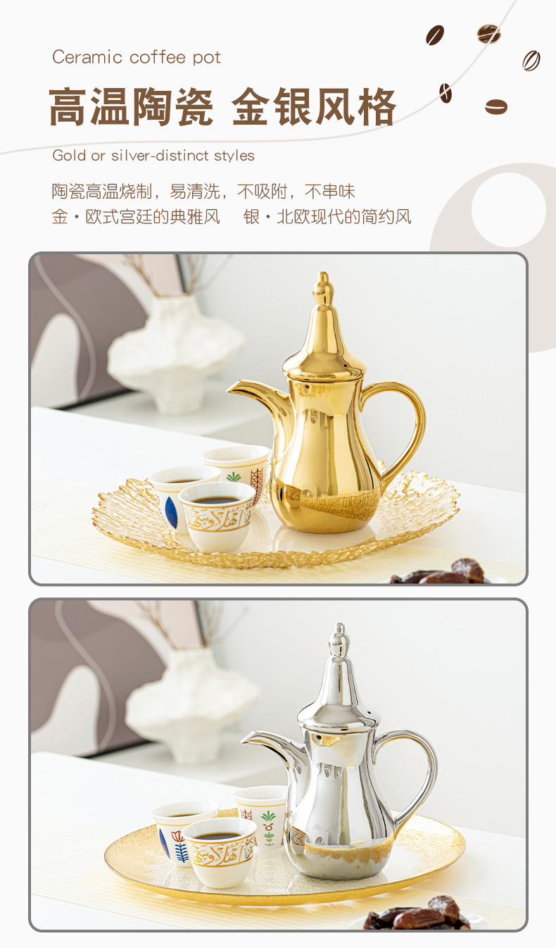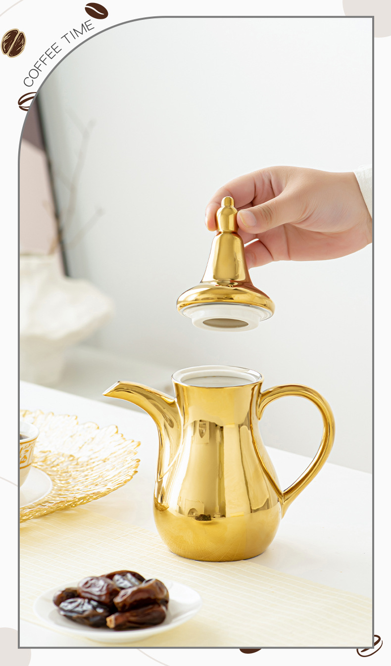 FCM中东热卖电镀轻奢高端Dallah 正宗的阿拉伯陶瓷咖啡壶水壶套装