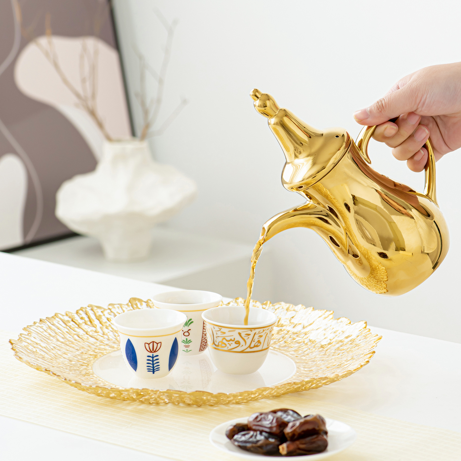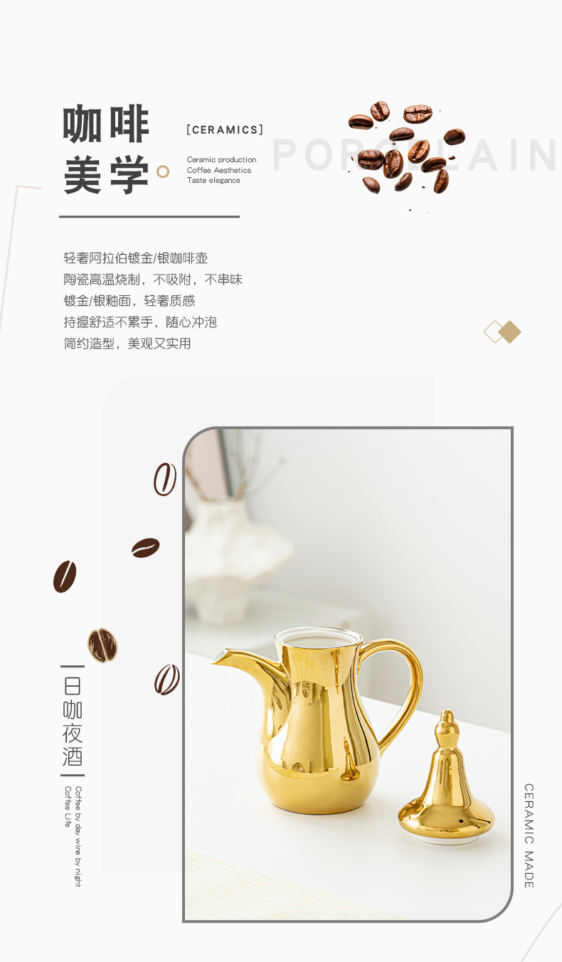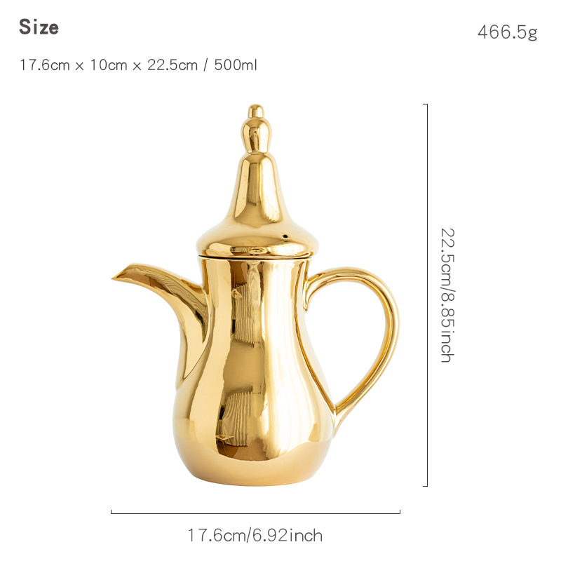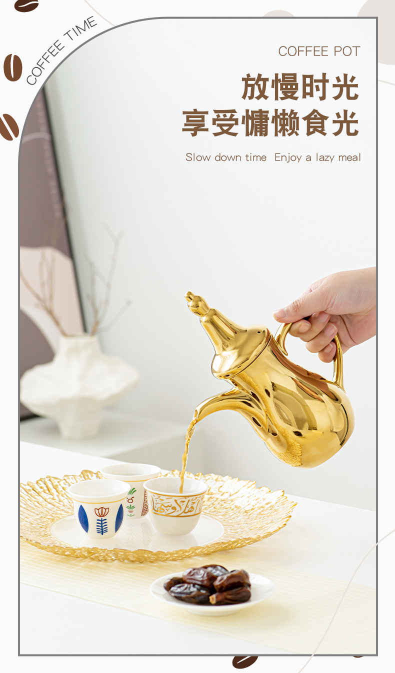 FCM中东热卖电镀轻奢高端Dallah 正宗的阿拉伯陶瓷咖啡壶水壶套装