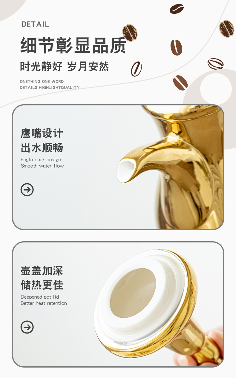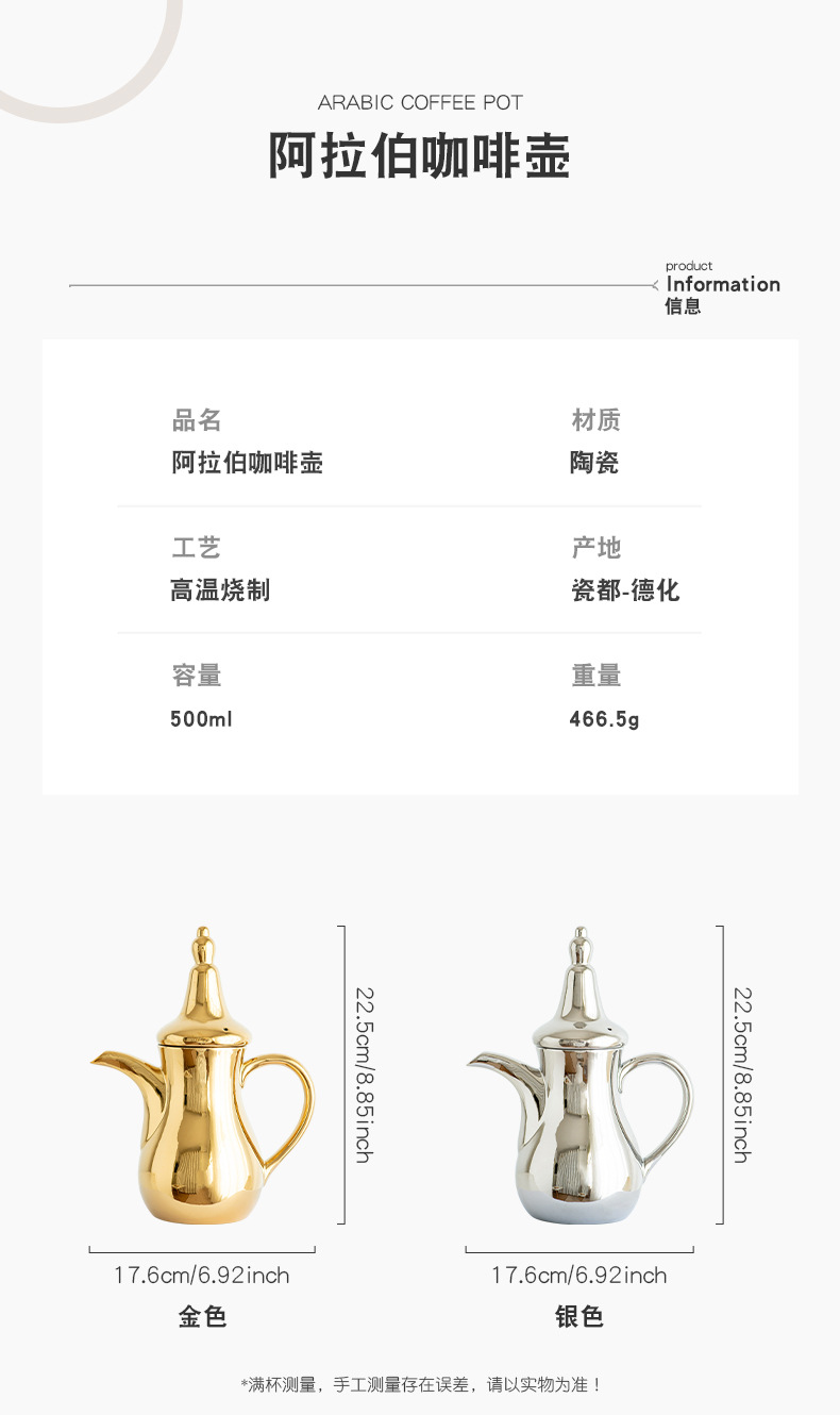 FCM中东热卖电镀轻奢高端Dallah 正宗的阿拉伯陶瓷咖啡壶水壶套装 投诉