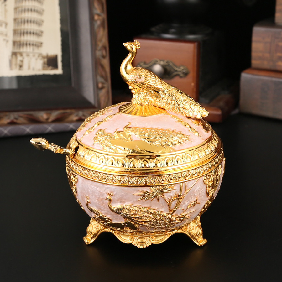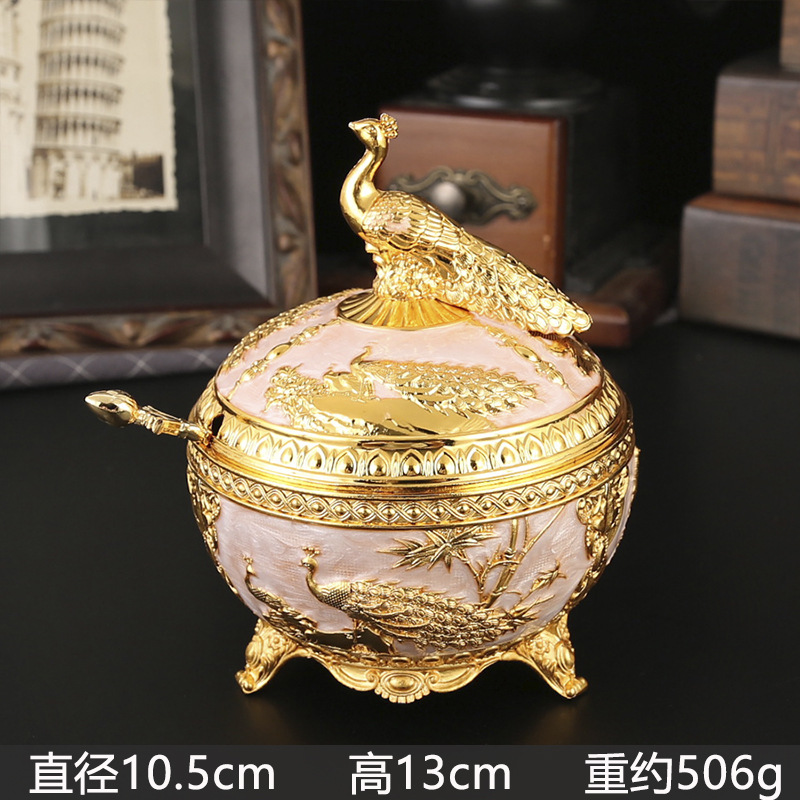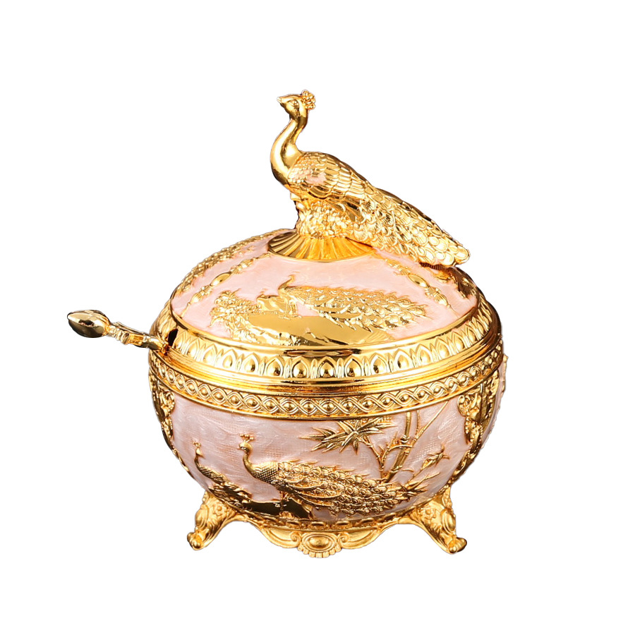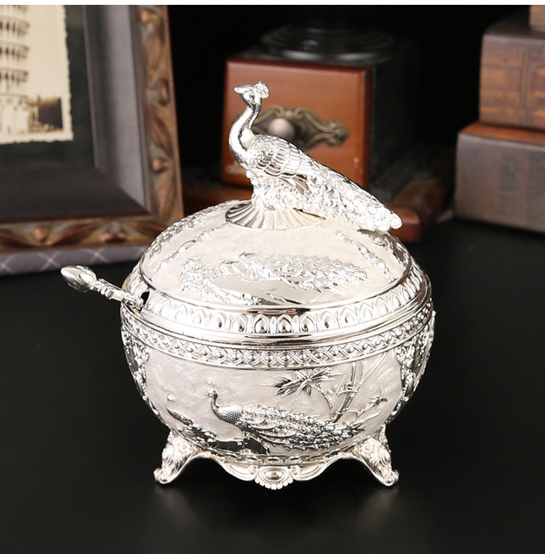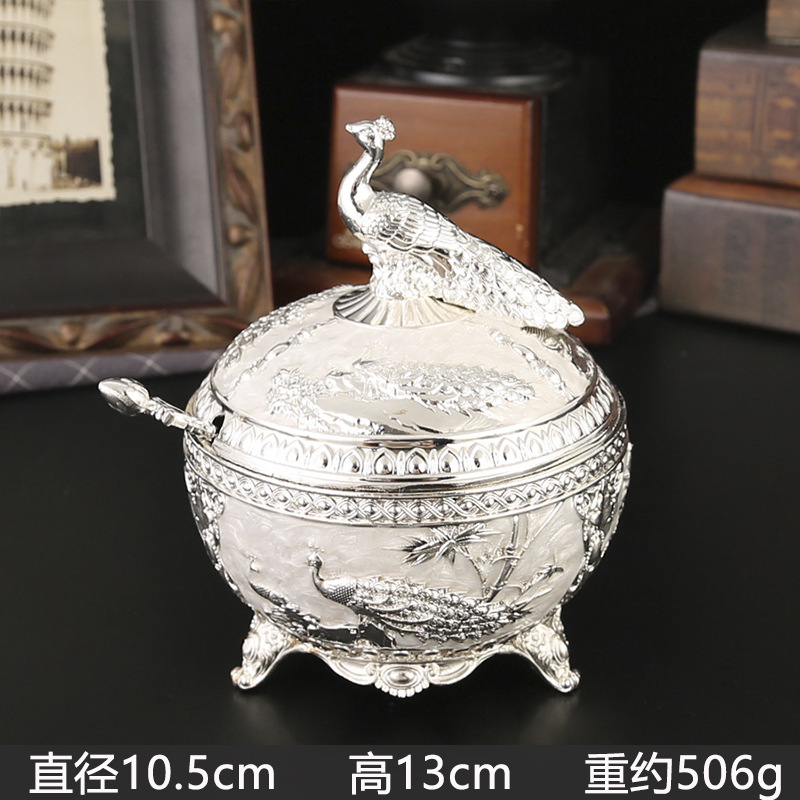 新款孔雀糖盅干果糖盅金属工艺品厨房餐厅家用调味罐翻盖防尘装饰