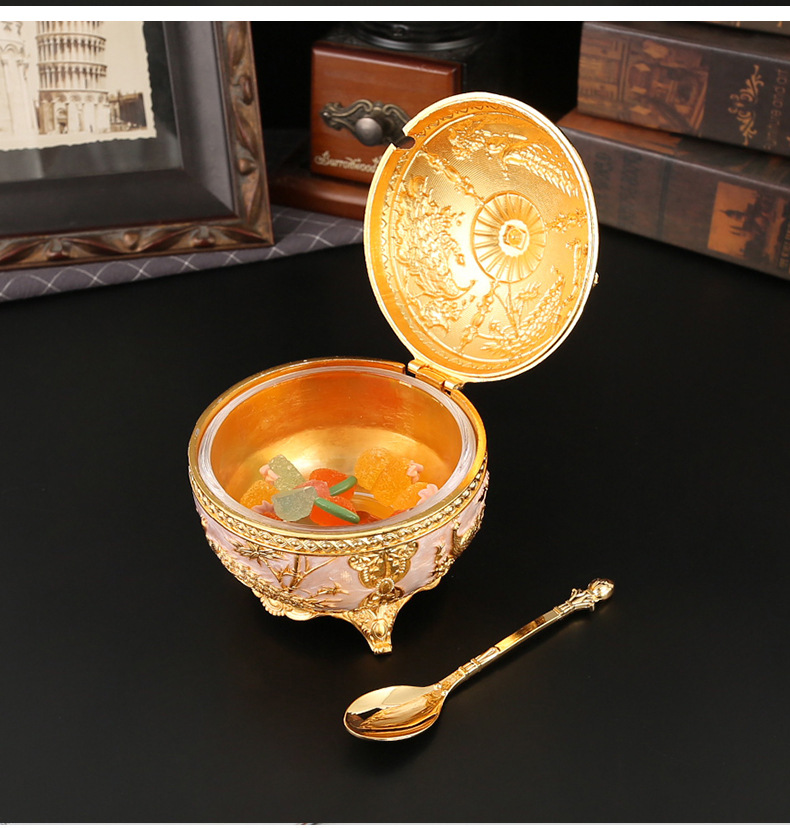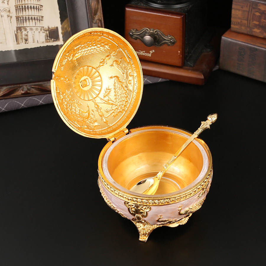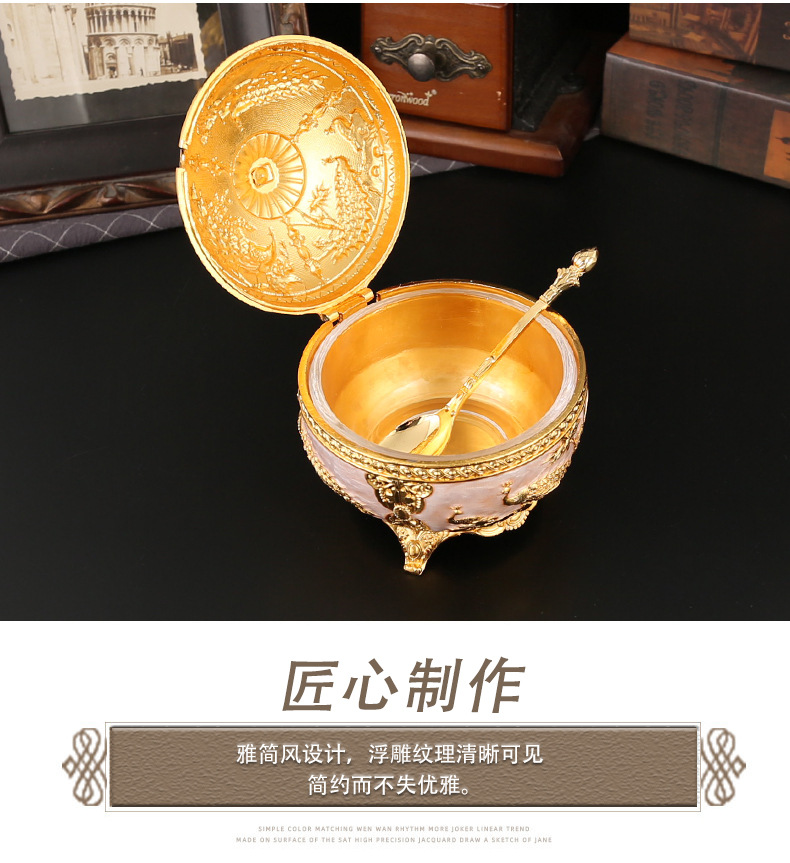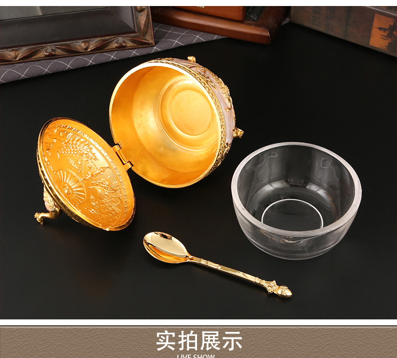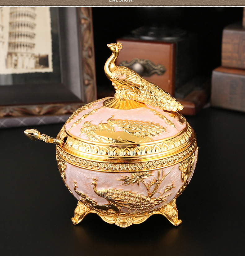 新款孔雀糖盅干果糖盅金属工艺品厨房餐厅家用调味罐翻盖防尘装饰