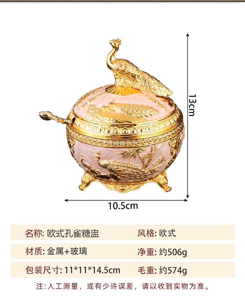 新款孔雀糖盅干果糖盅金属工艺品厨房餐厅家用调味罐翻盖防尘装饰 投诉