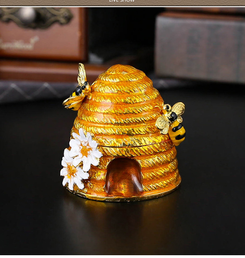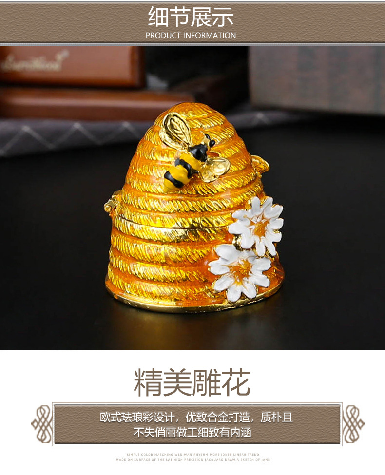 合金珐琅彩首饰盒蜜蜂罐摆件田园轻奢创意家居饰品收纳盒装饰礼物