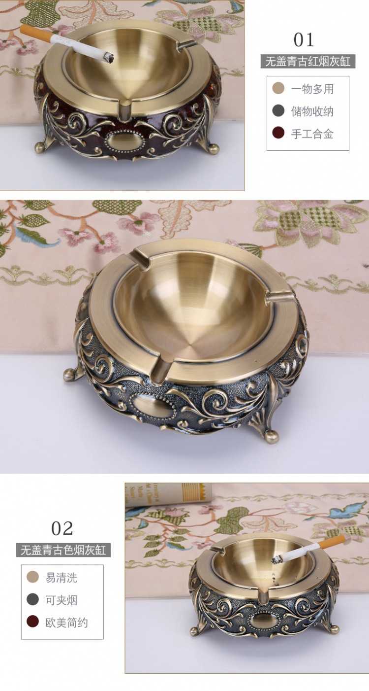 复古烟灰缸家用仿青古客厅北欧新中式大号金属烟灰缸创意新中式