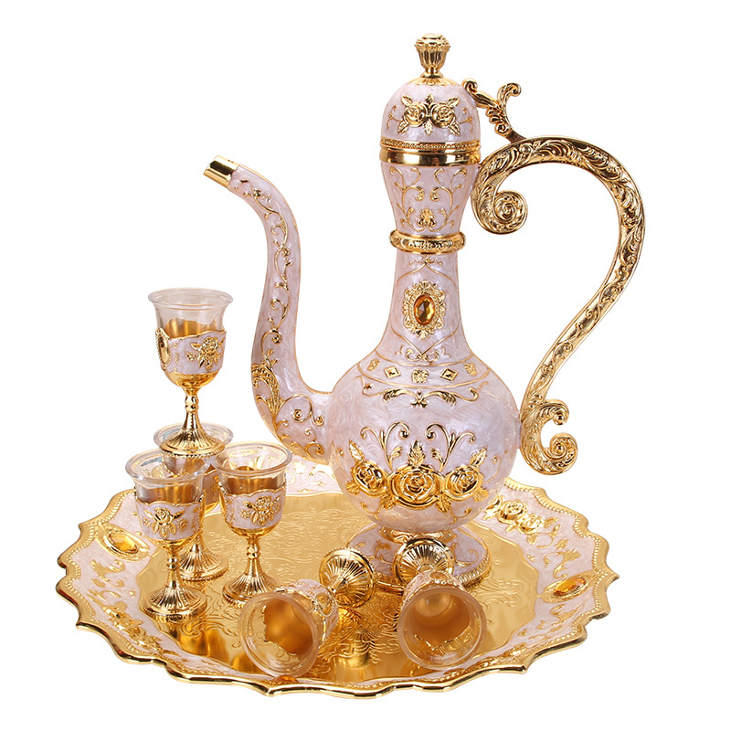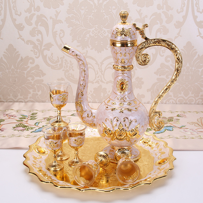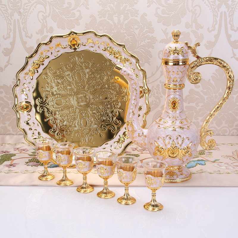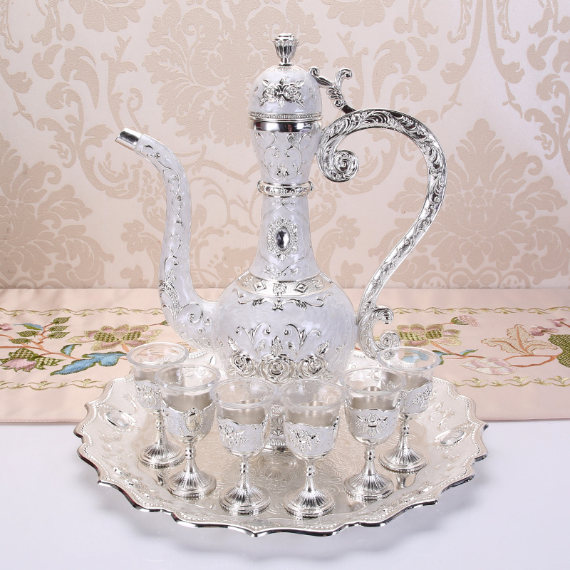 俄罗斯酒具套装欧式玻璃金属大号酒杯酒壶套装创意高档家用摆件