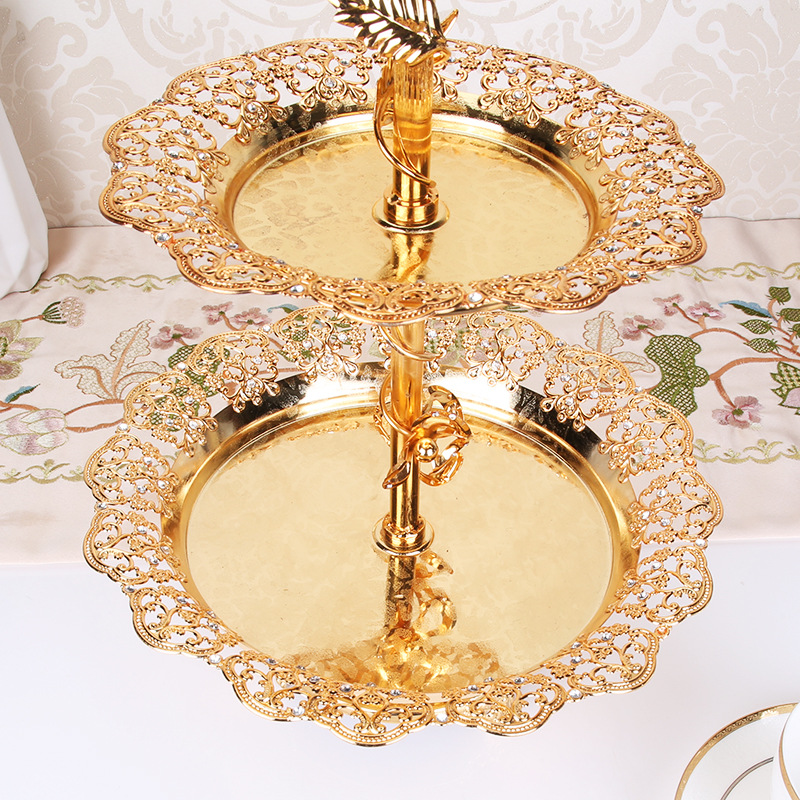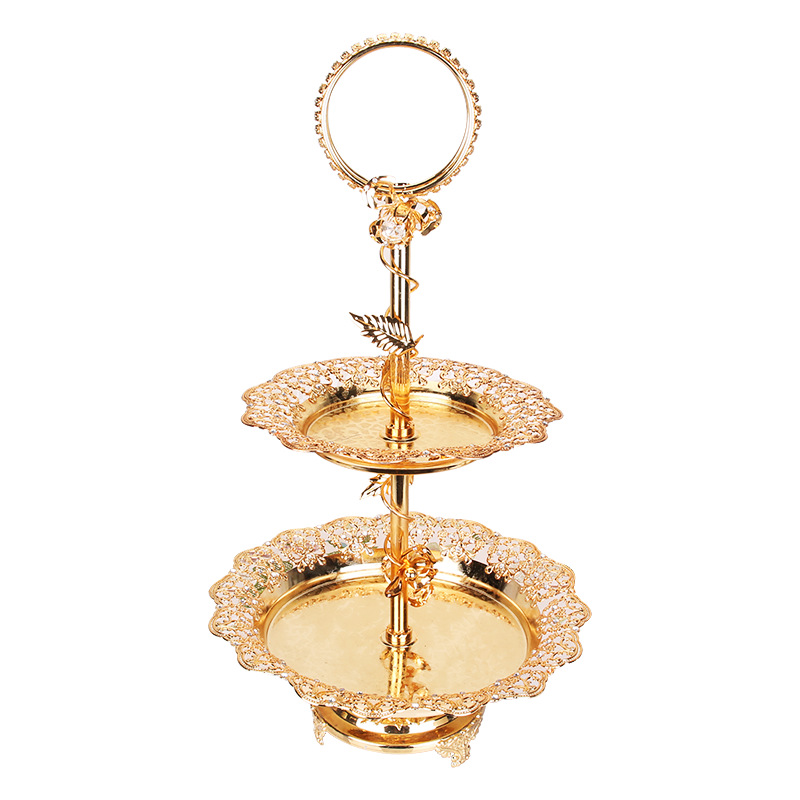 欧式合金双层果盘现代创意样板房装饰品家居软装摆件时尚果盆果斗
