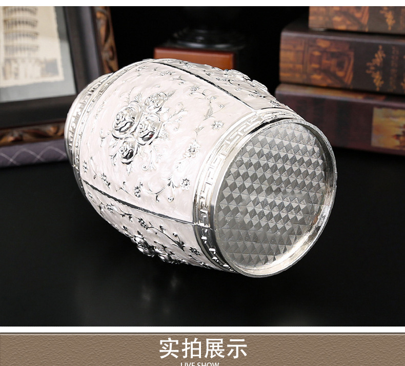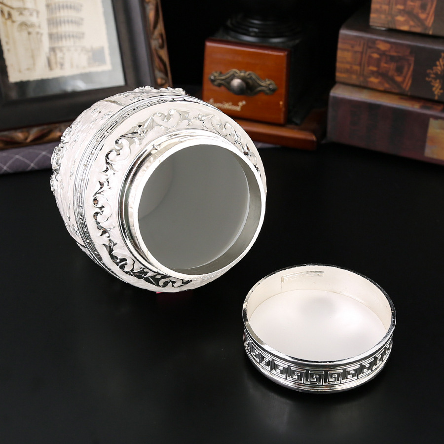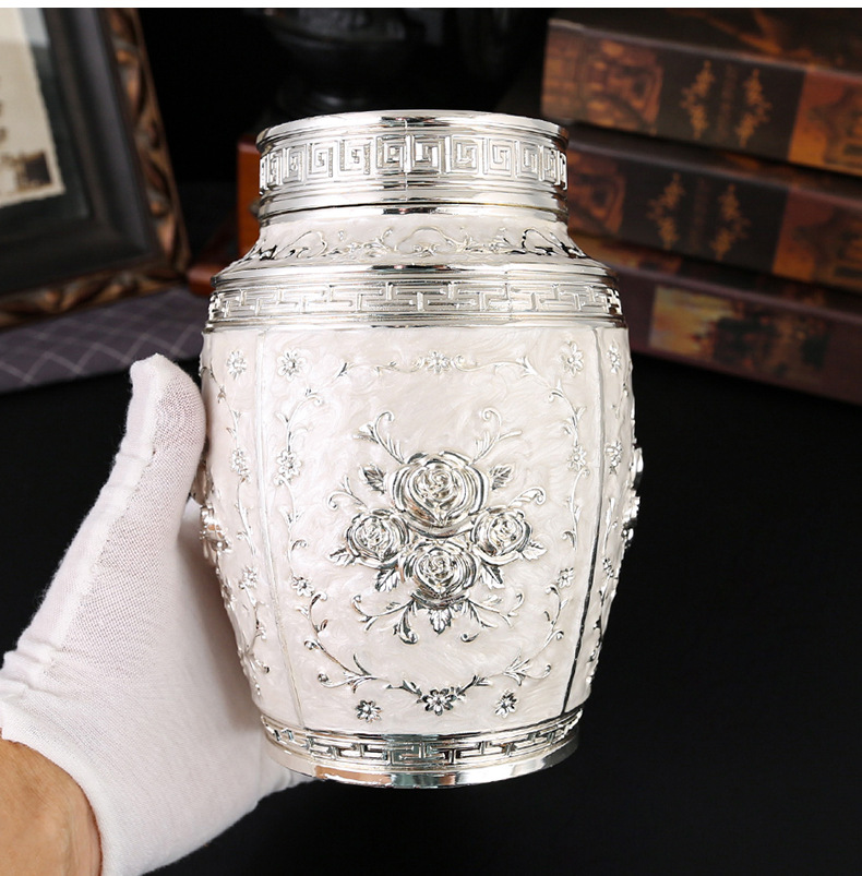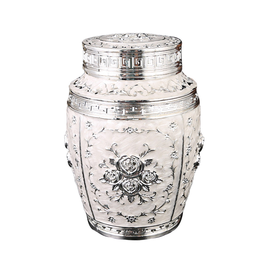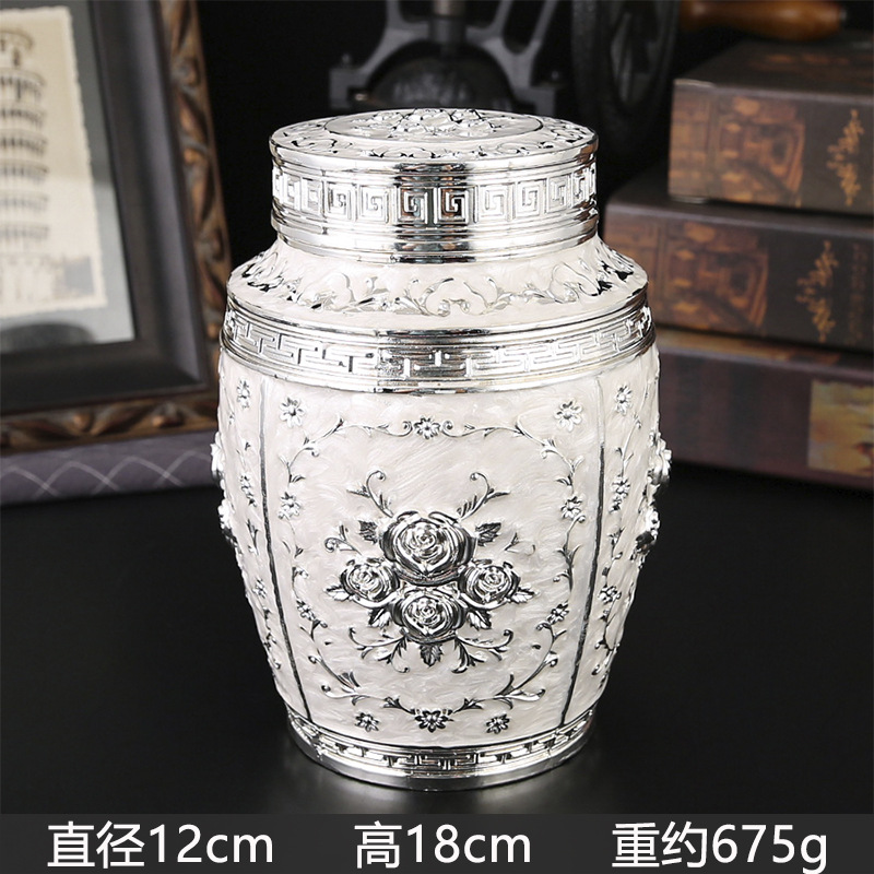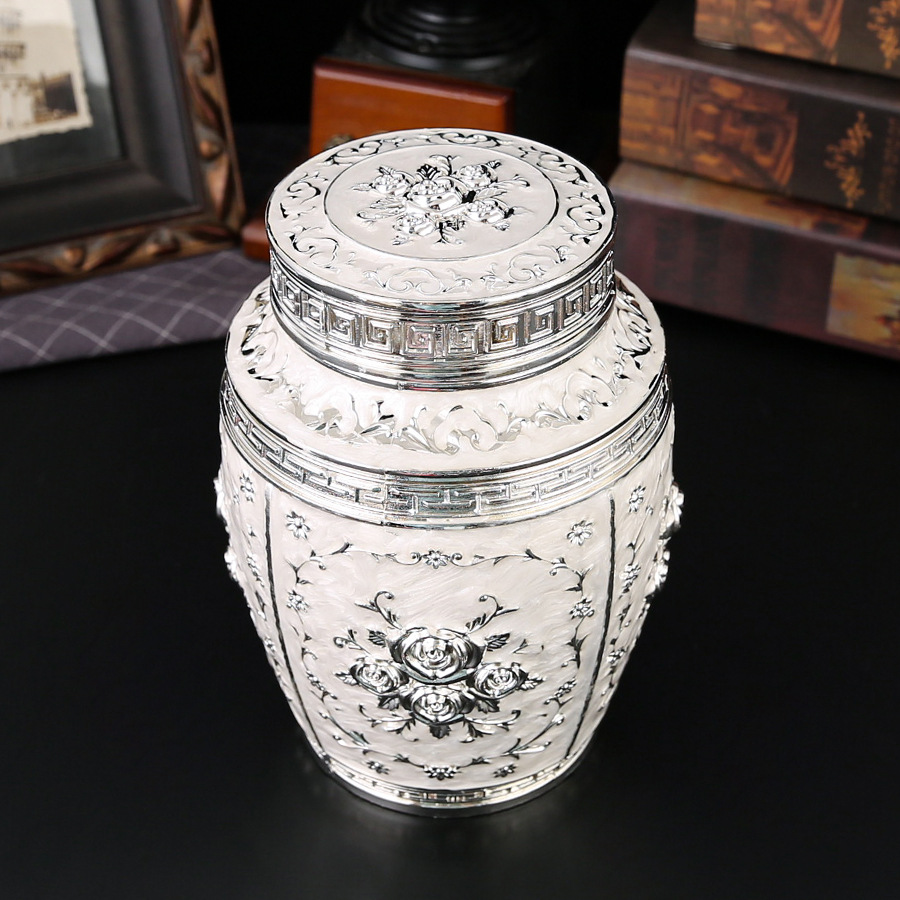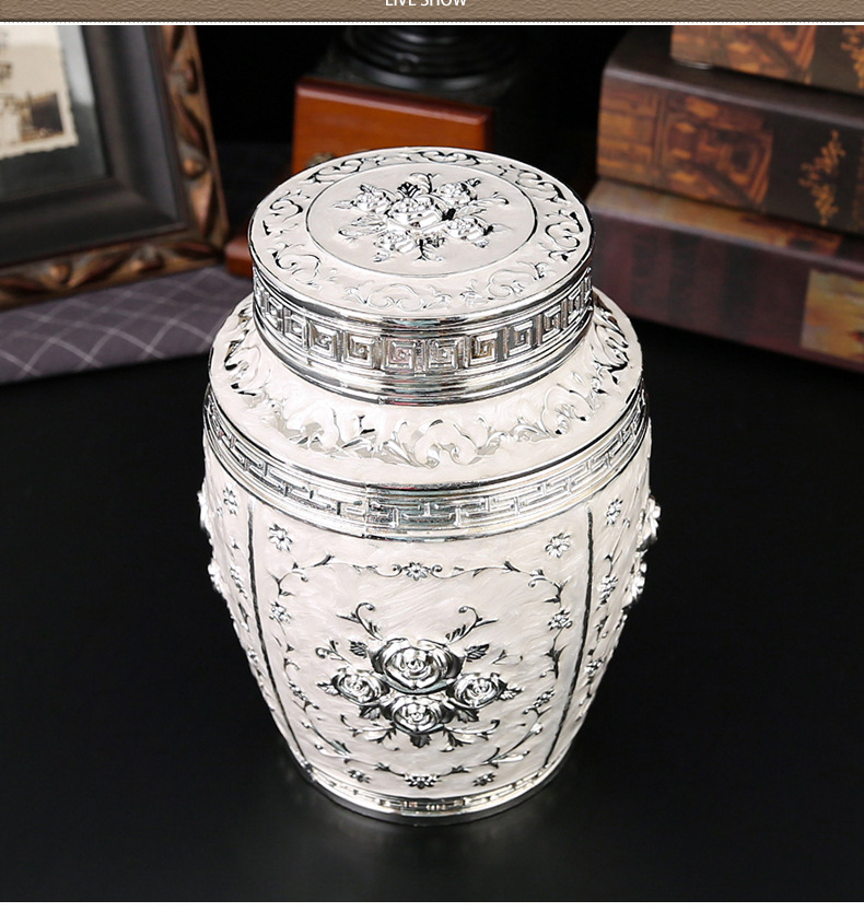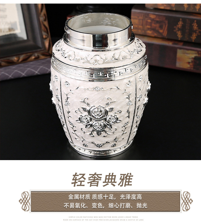 玫瑰花银白茶叶罐家用高档密封大容量茶罐防潮食品储存罐工艺摆件