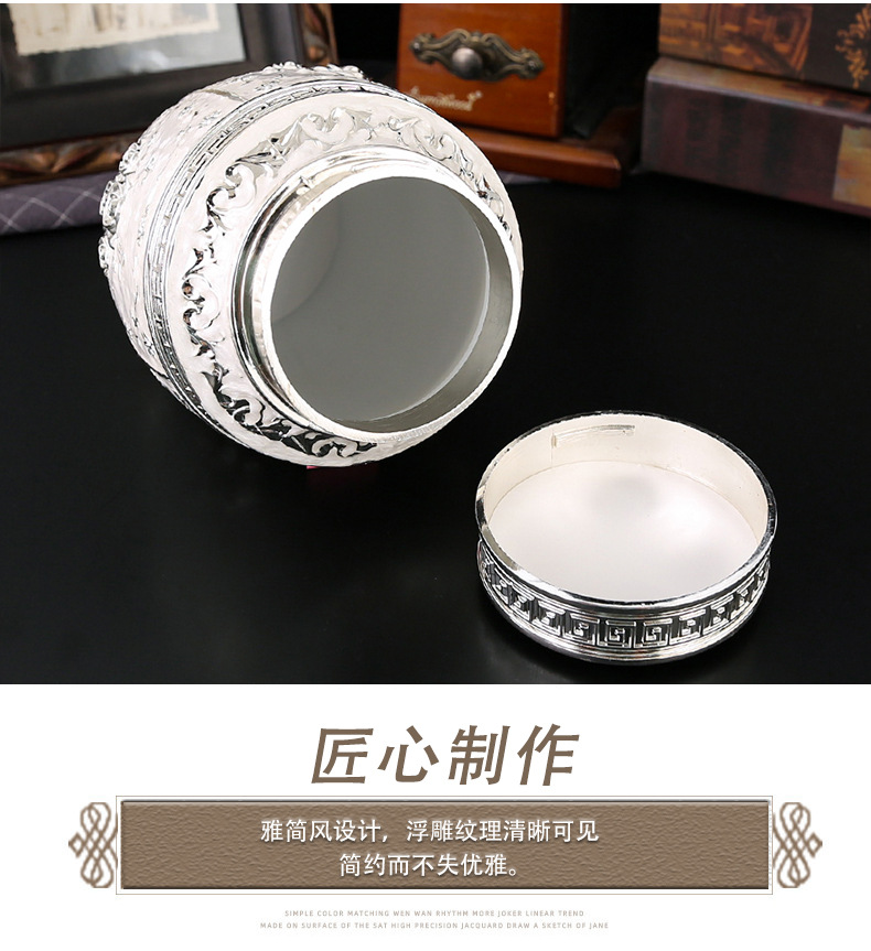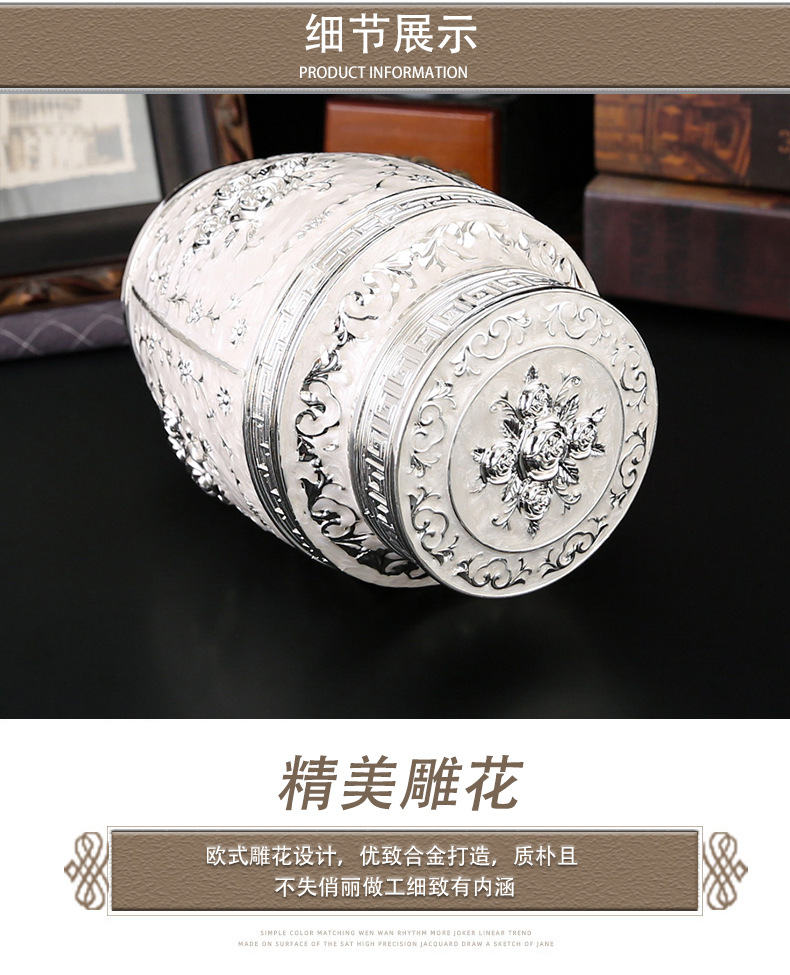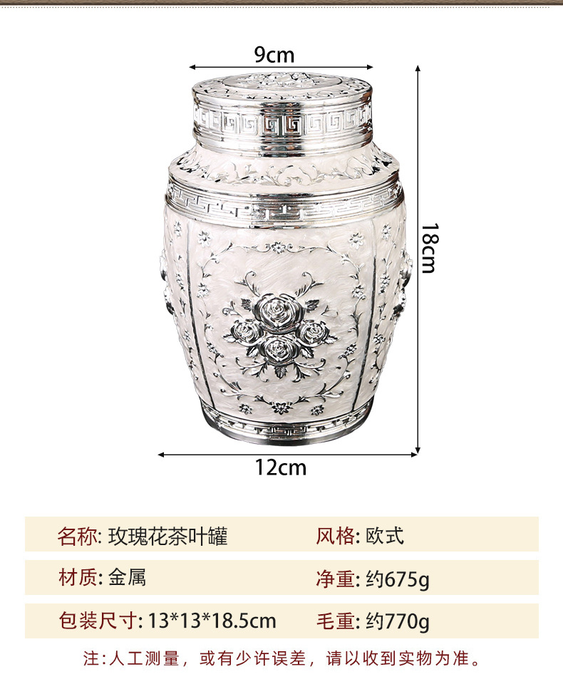 玫瑰花银白茶叶罐家用高档密封大容量茶罐防潮食品储存罐工艺摆件 投诉