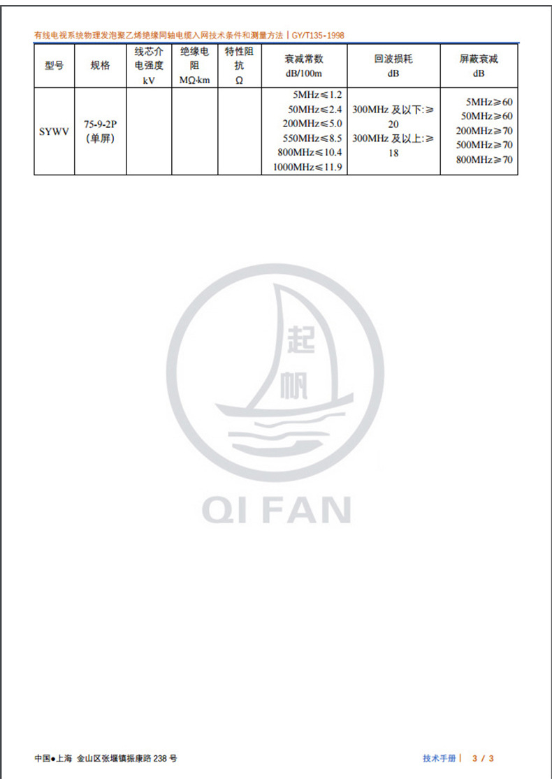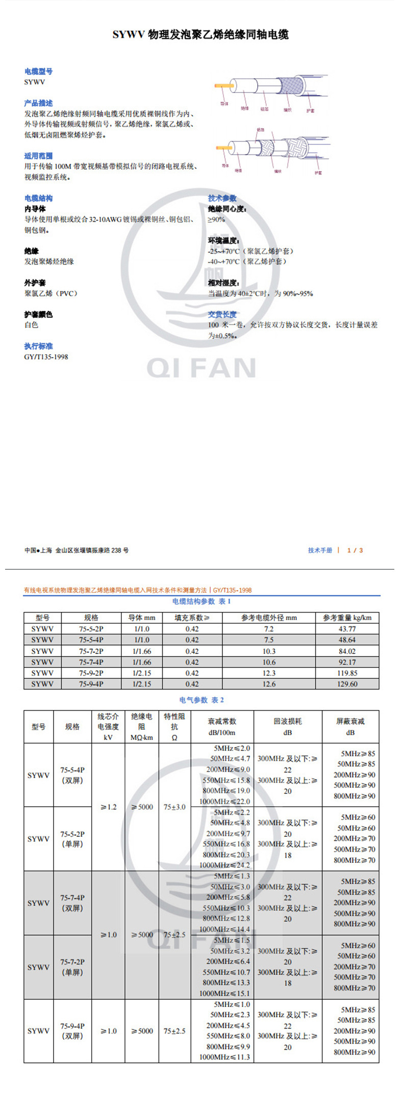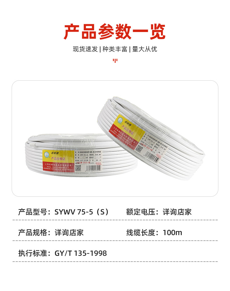 | SYWV75-5(S)双频100米白色 | ¥21115 | 9999卷可售 |