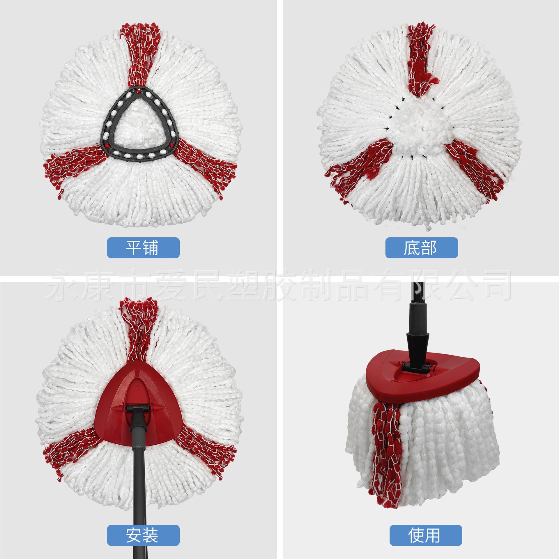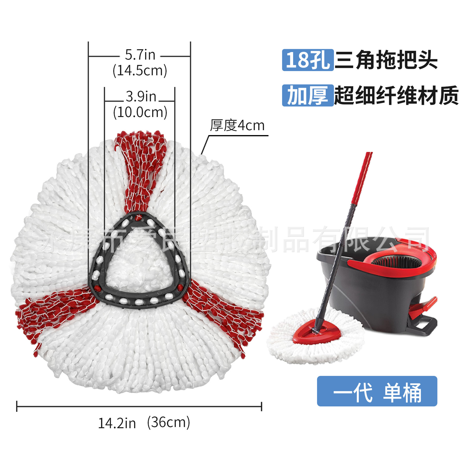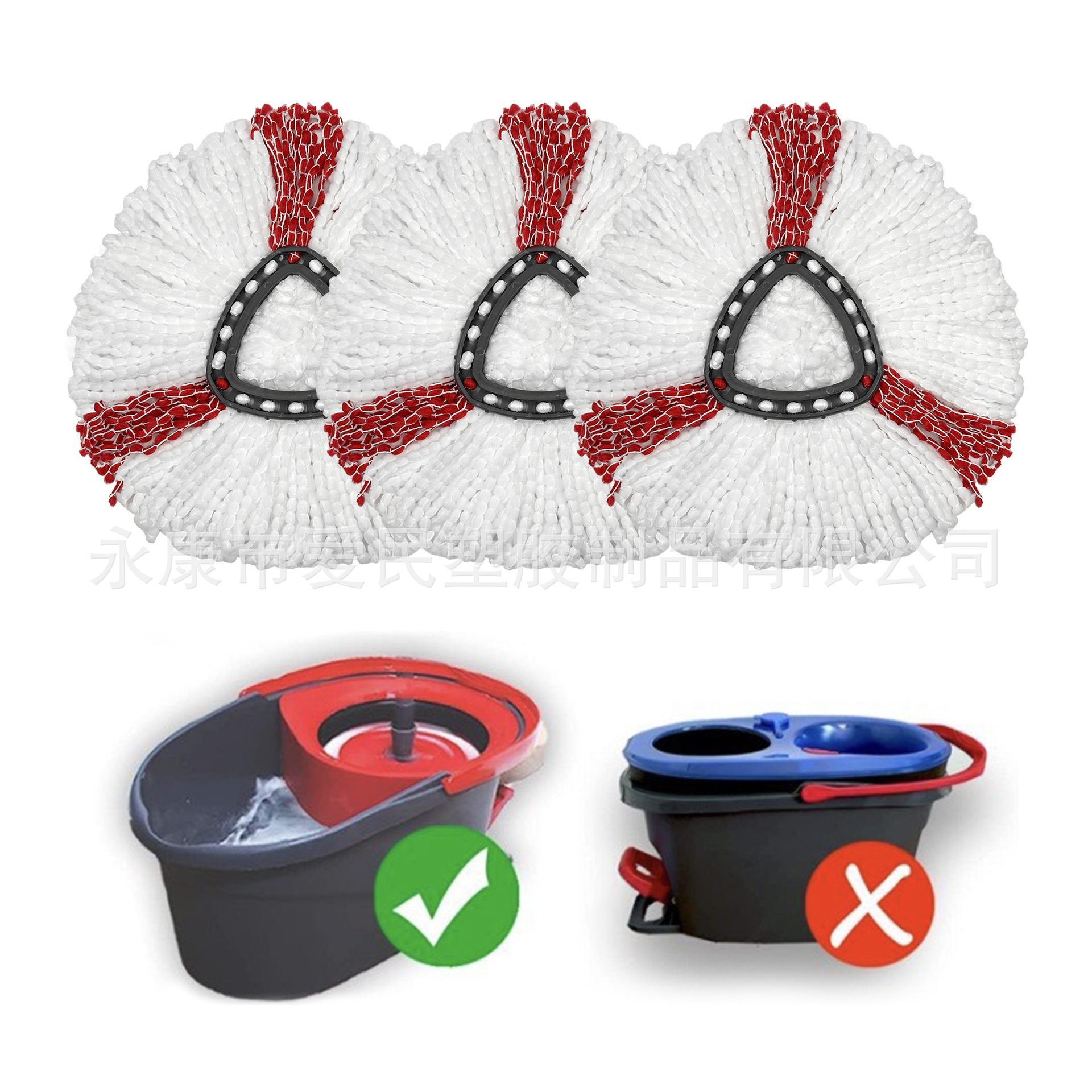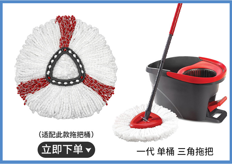 跨境专供免手洗家用加厚旋转拖把配件三角形拖把头替换大卫拖布 投诉