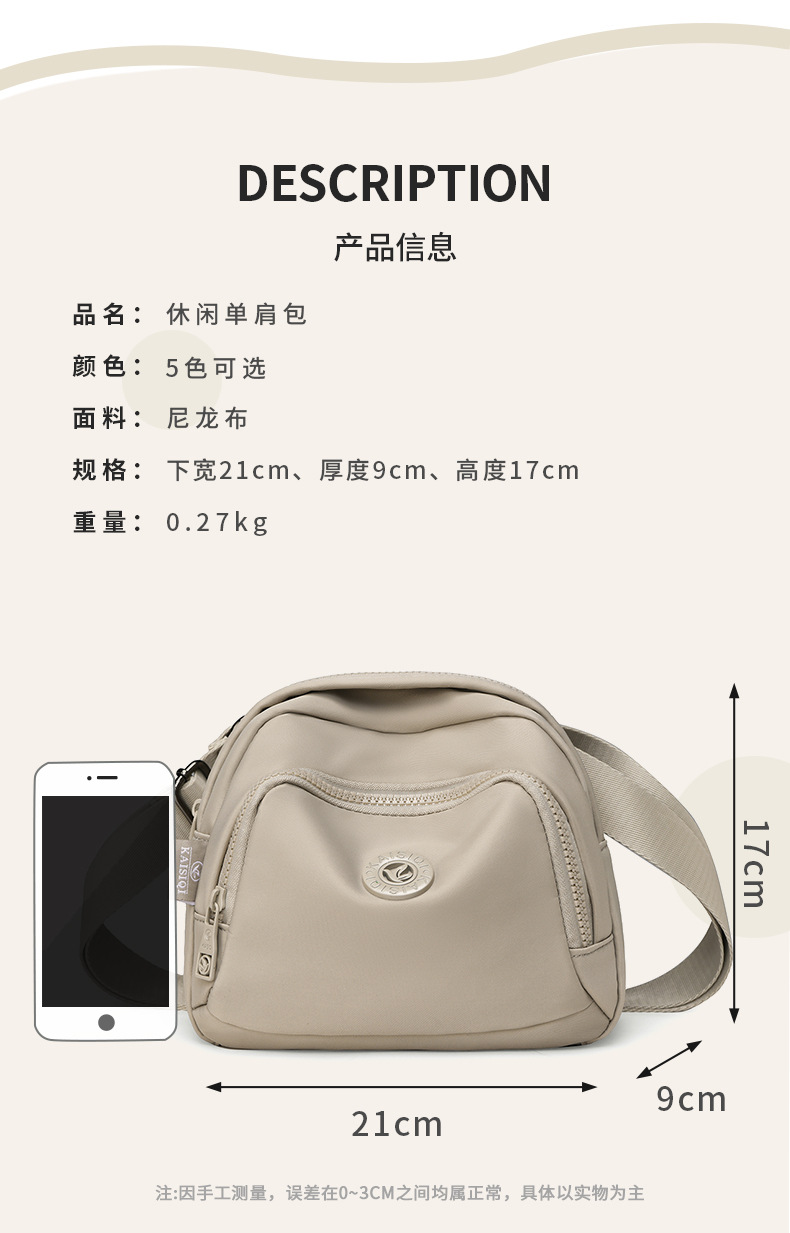 韩版休闲百搭女士斜挎包2026新款潮流尼龙贝壳包轻便纯色单肩包包 投诉