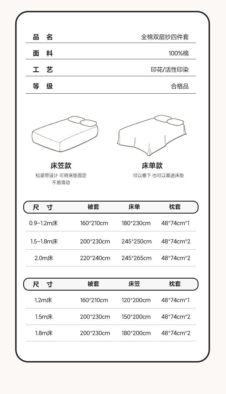 | 0.9-1.2m床单款三件套【适合被芯150*200cm】 | ¥13365 | 3000套可售 |